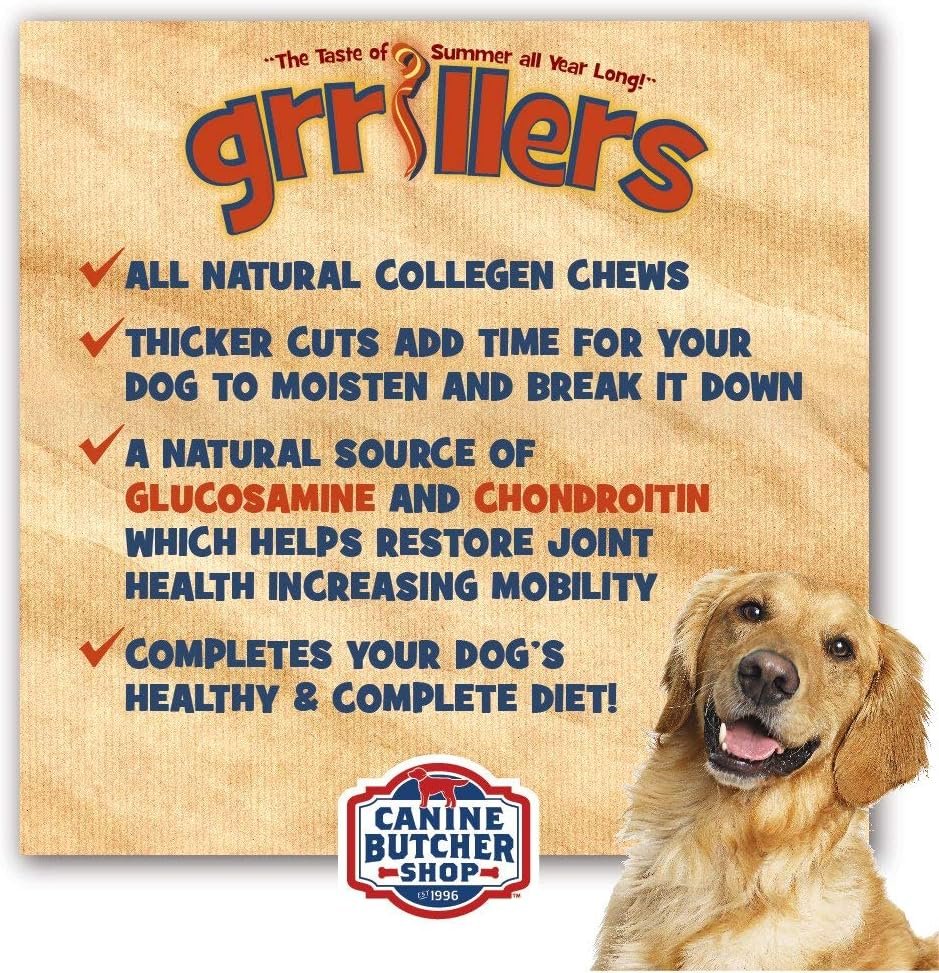Beef Collagen. Rawhide grillers are made of beef collagen, an essential protein for mammals, that strengthens teeth, bones, joints, nails and hair, and ligaments and tendons.