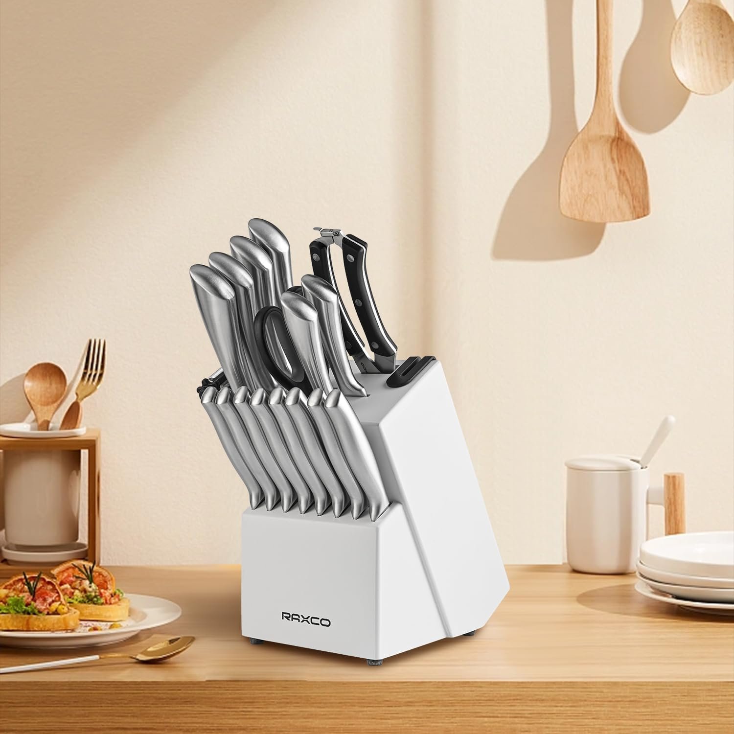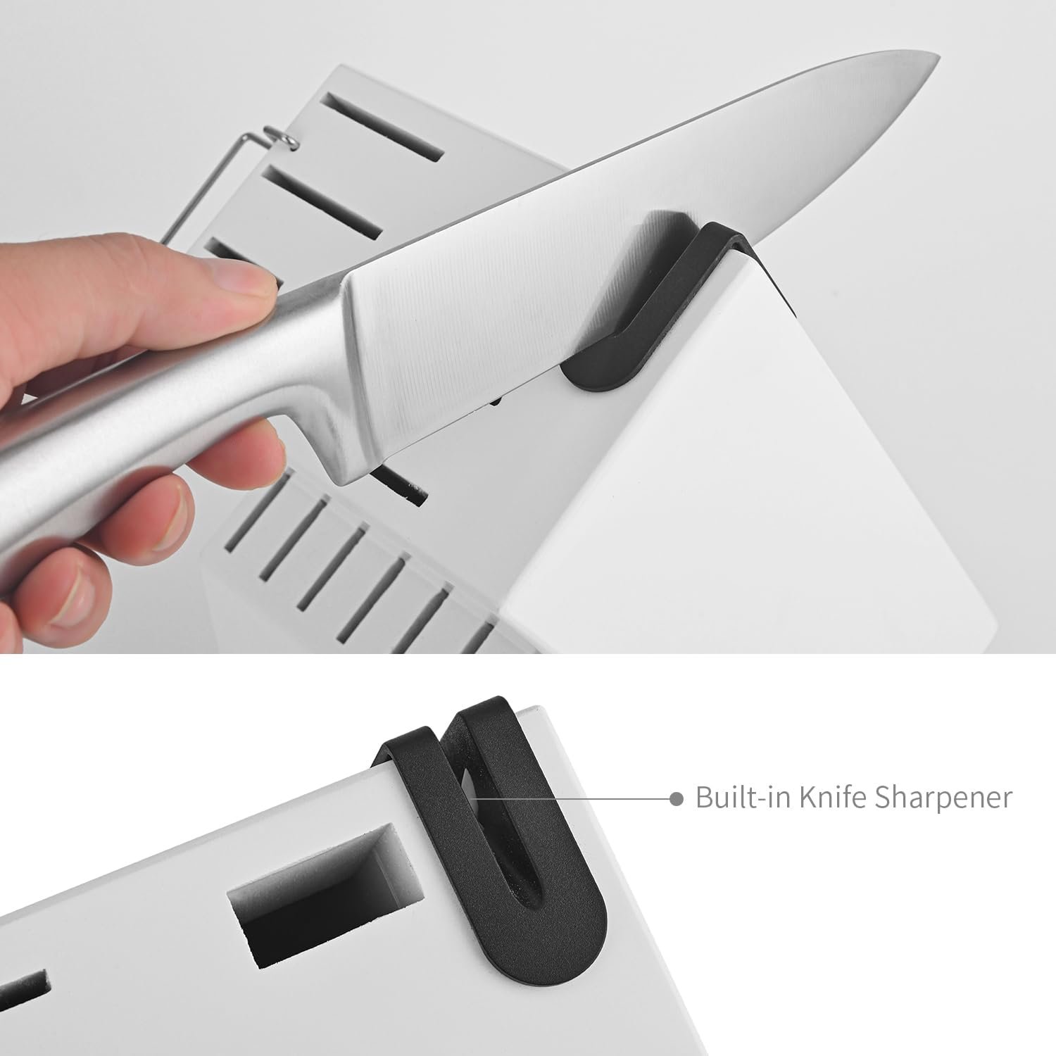 [Advanced Knife-Making Crafts]:Each Kitchen knife had been optimized edge technology and make it excellent sharp and works the best, the Blok knife set with an innovational built-in sharpener. Ergonomically designed grips make smooth and comfort to enjoy your every cooking