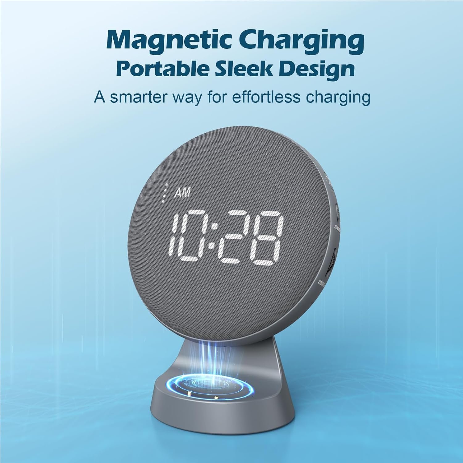 Rechargeable Clock for Travel: Compact and lightweight (4.34.31.8 inches, 187.7g/0.41 lb), easily into your bag or suitcase without taking up much space. With a long-lasting battery that can operate for up to 29 hours single wireless charge, ideal for business trips, travel, and on-the-go convenience.