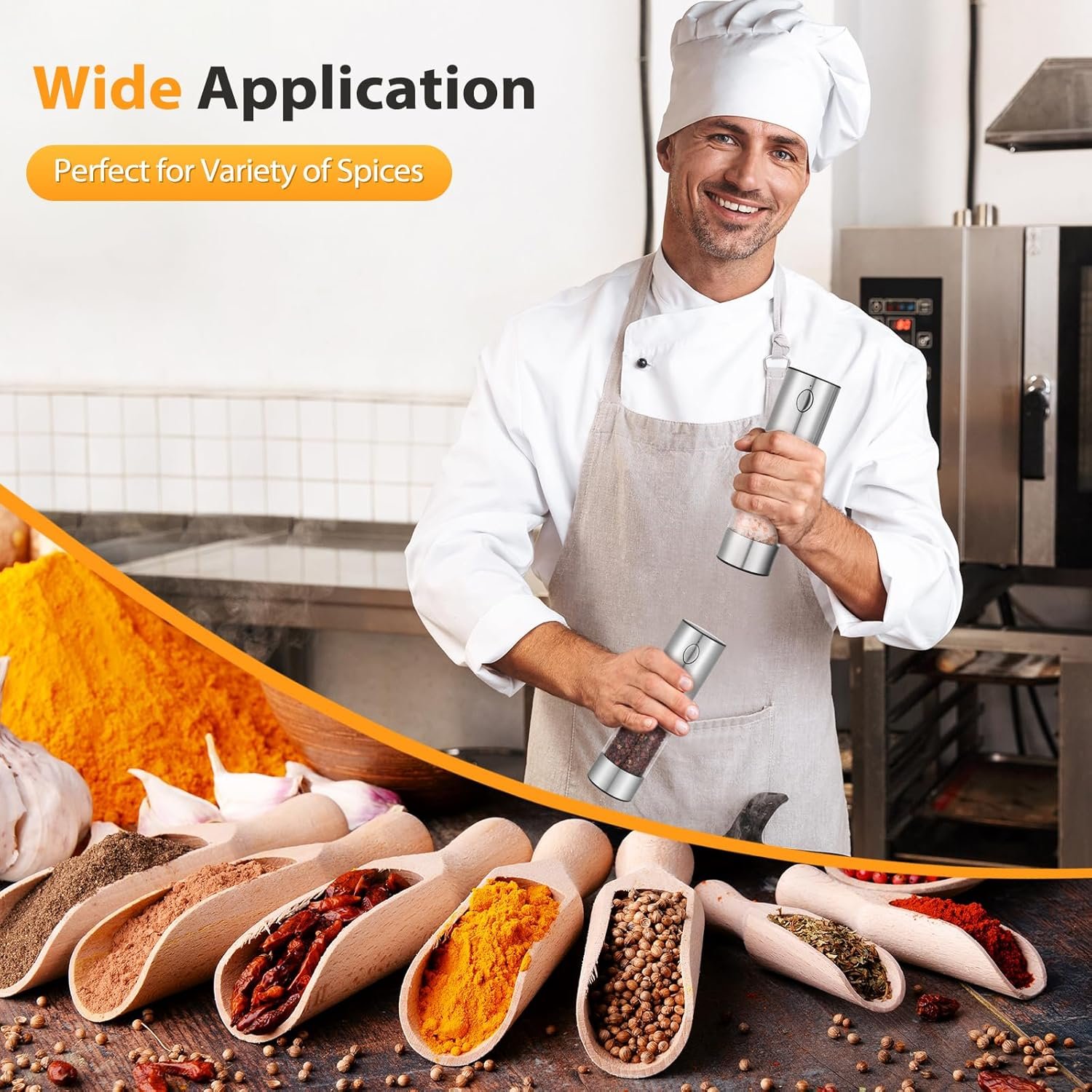 Easy One-Handed operation:Just hold the button to get fresh spices! Automatic salt and pepper grinder sets are more convenient than traditional manual grinder sets. Easily season dishes with just one hand, even while stirring or handling food, for a convenient, hygienic cooking experience. The LED light also lights up while it’s working so you can clearly see the amount of spices being sprinkled on the food