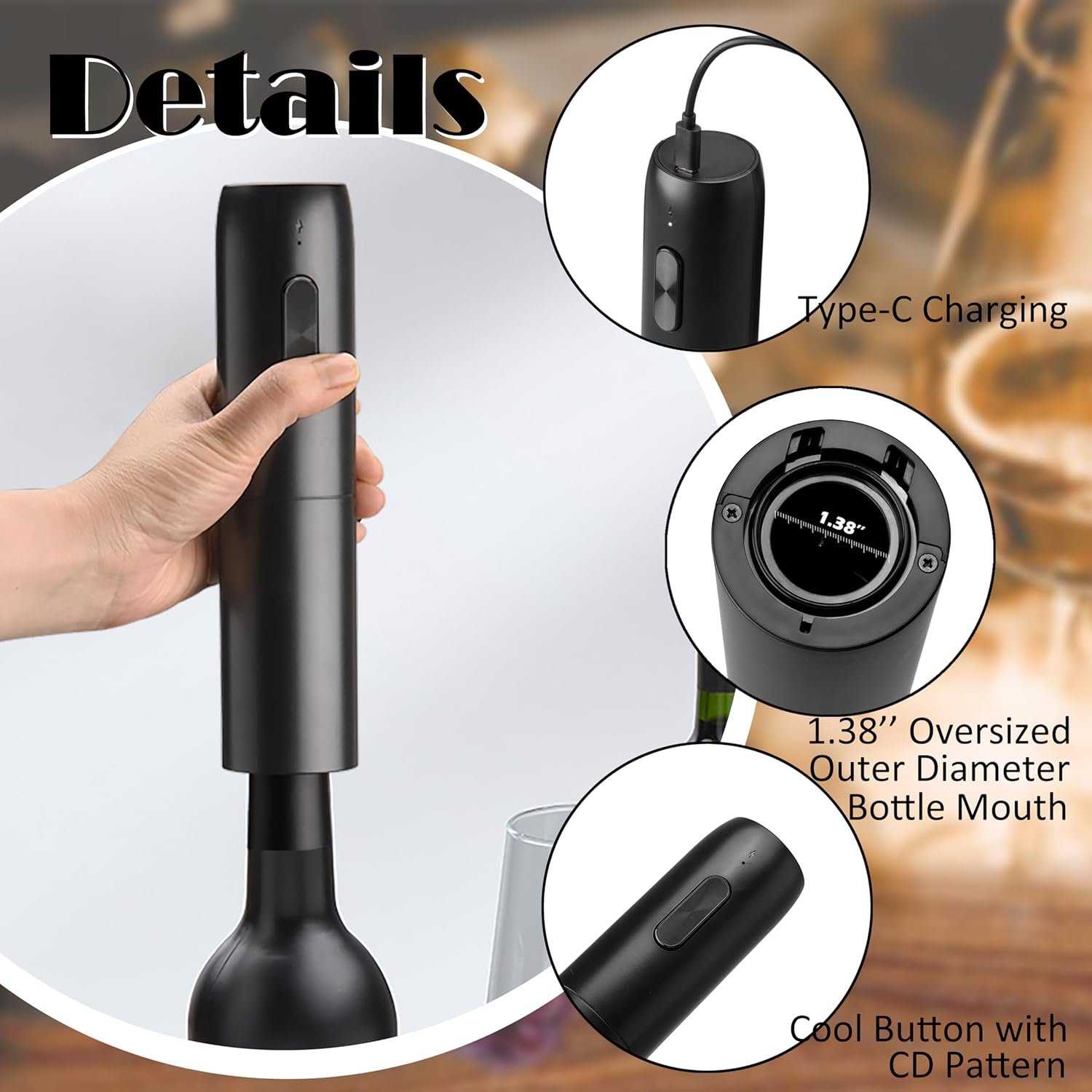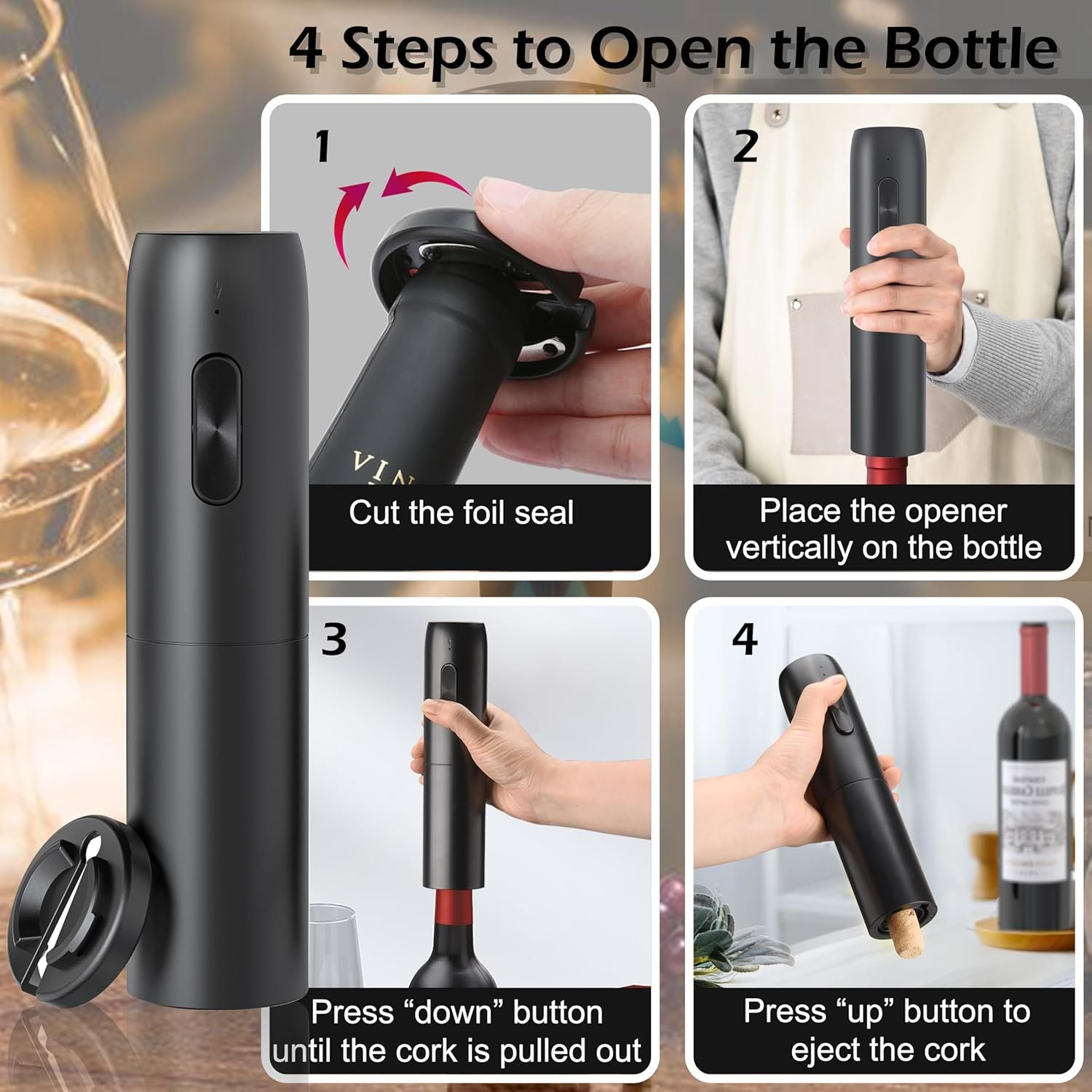 Wine Bottle Opener Electric Rechargeable : Effortlessly open bottles with our elegant auto wine opener. This electric corkscrew wine opener is perfect for wine lovers seeking convenience and style. A great addition to any wine opener electric collection