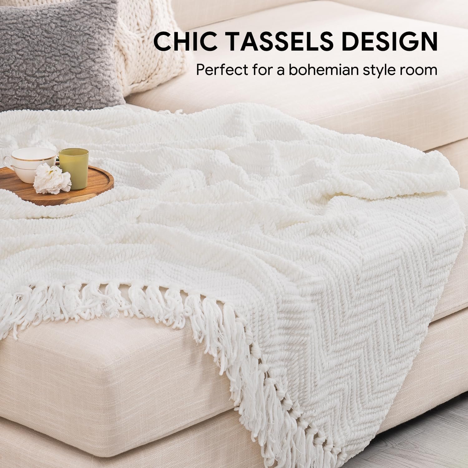 Built to Last – Made from high-quality, fade-resistant fabrics and impeccable craftsmanship, our cream white throw blanket boasts superior durability, ensuring vibrant hues that stay vivid even after countless washes. Additionally. This soft chenille throw blanket is certified to Oeko-tex standard 100, so it’s safe for you and your family to use in daily life.