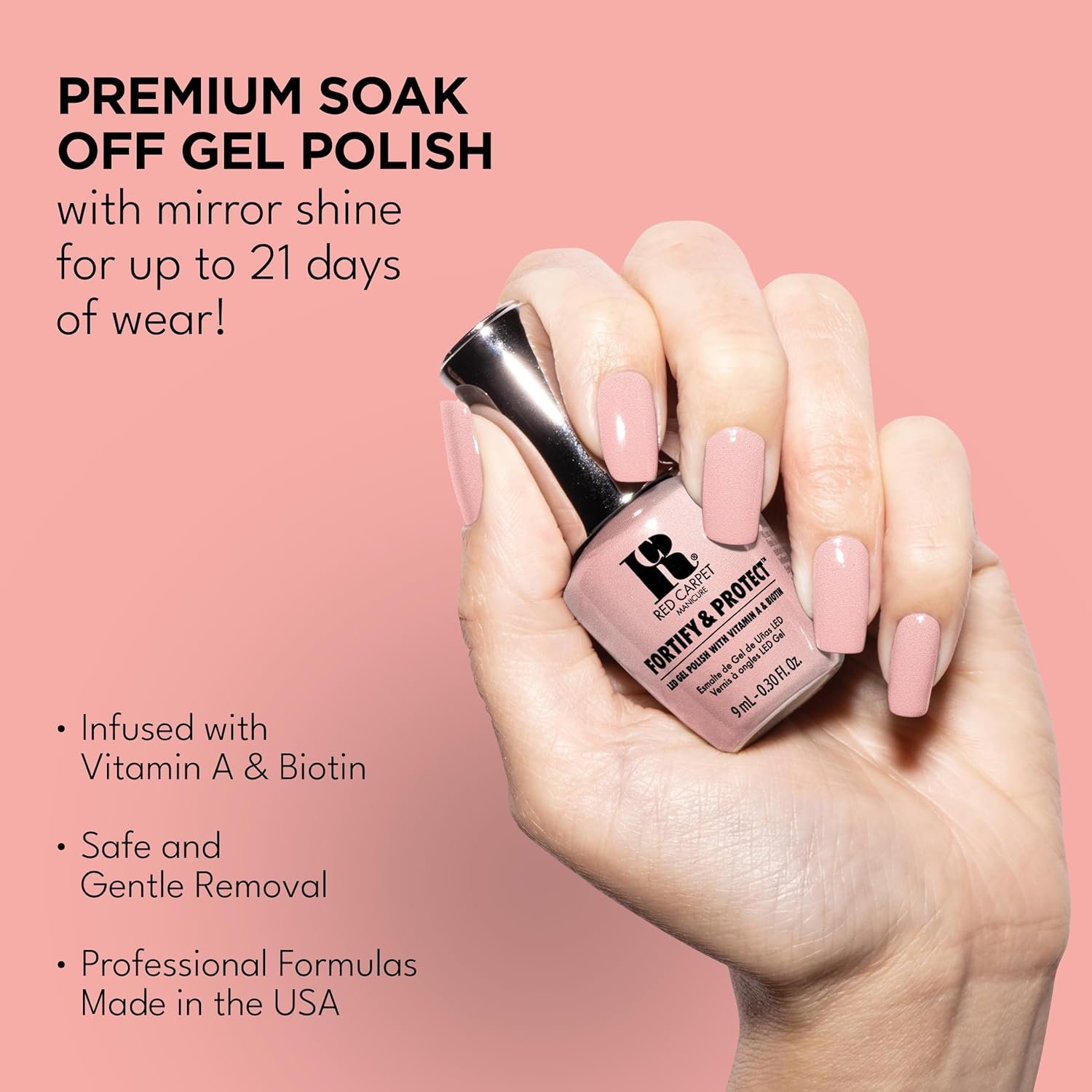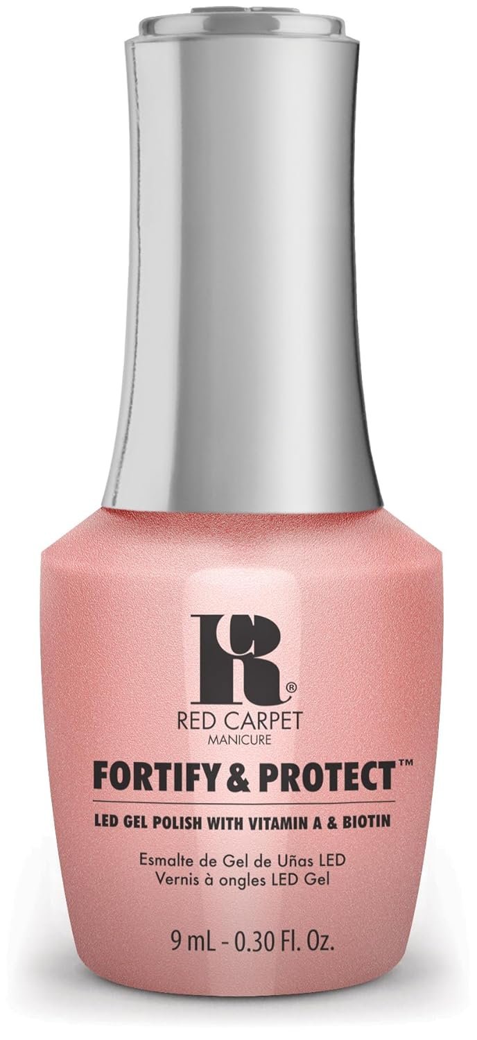 Red Carpet Manicure Fortify & Protect Soft Pink Pearl Gel Polish for Strong, Healthy Nails – Infused with Vitamin A & Biotin – (Teahouse Traveler) Led Nail Gel Color, 0.3 Fl Oz