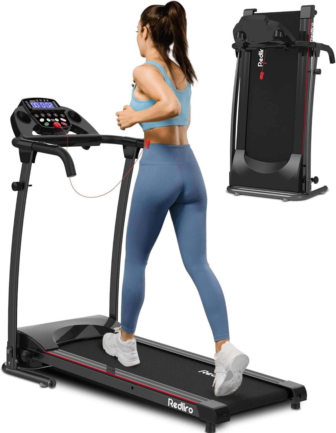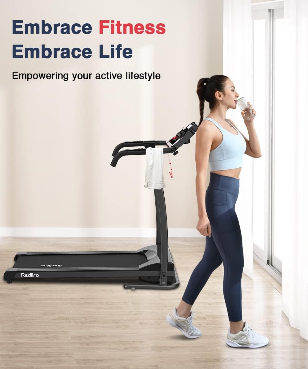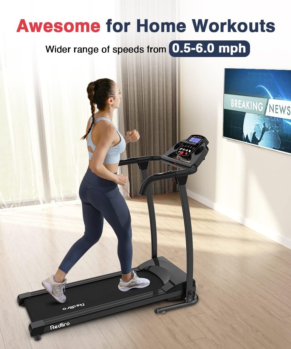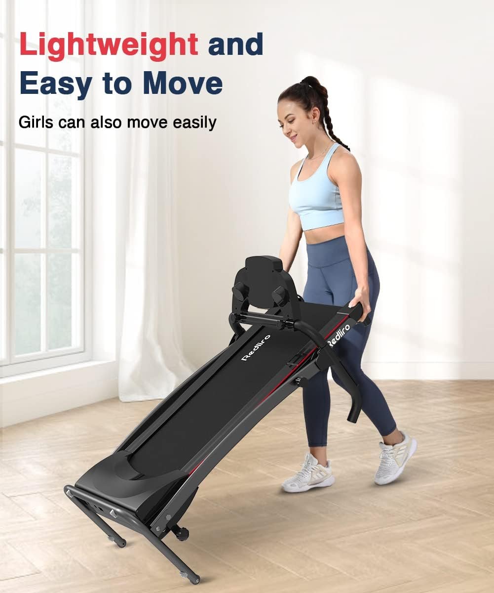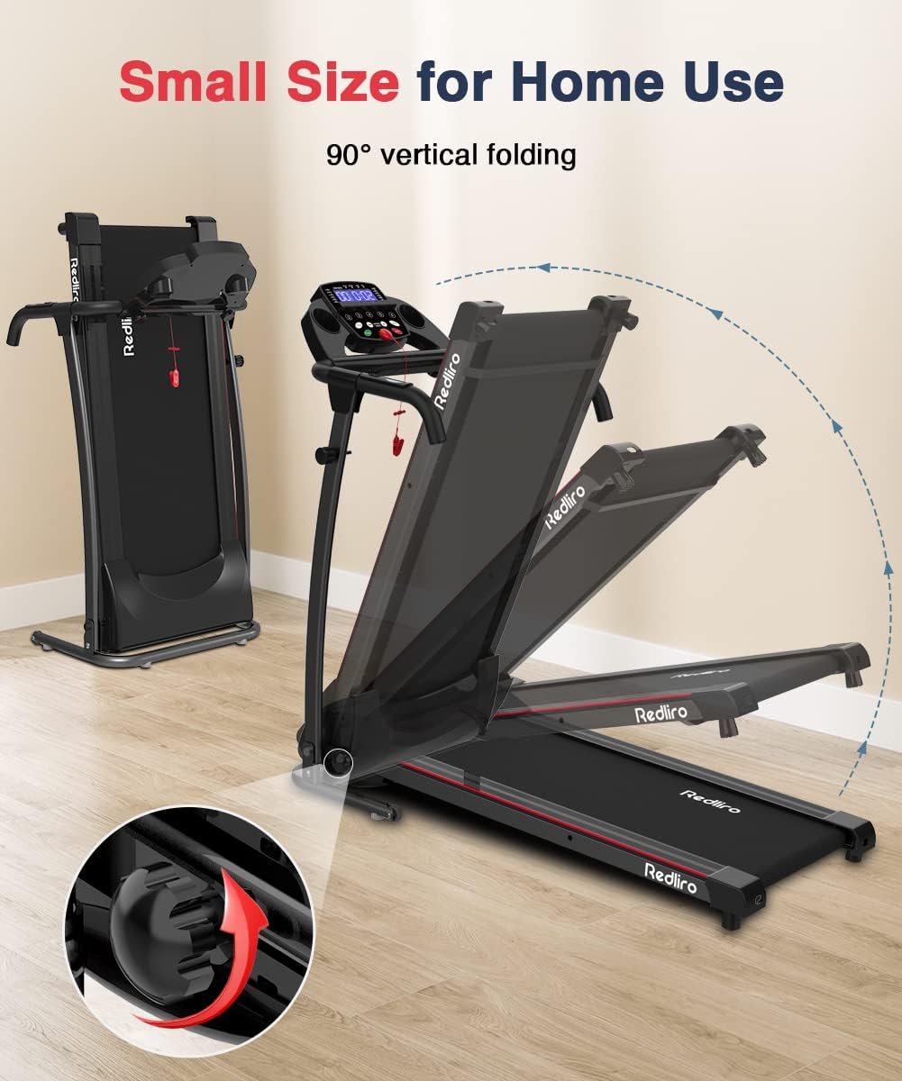 REDLIRO Electric Treadmill Foldable Exercise Walking Machince for Apartment Home/Office Jogging Compact Folding Easy Assembly 12 Preset Program 2 Wheels LCD Display