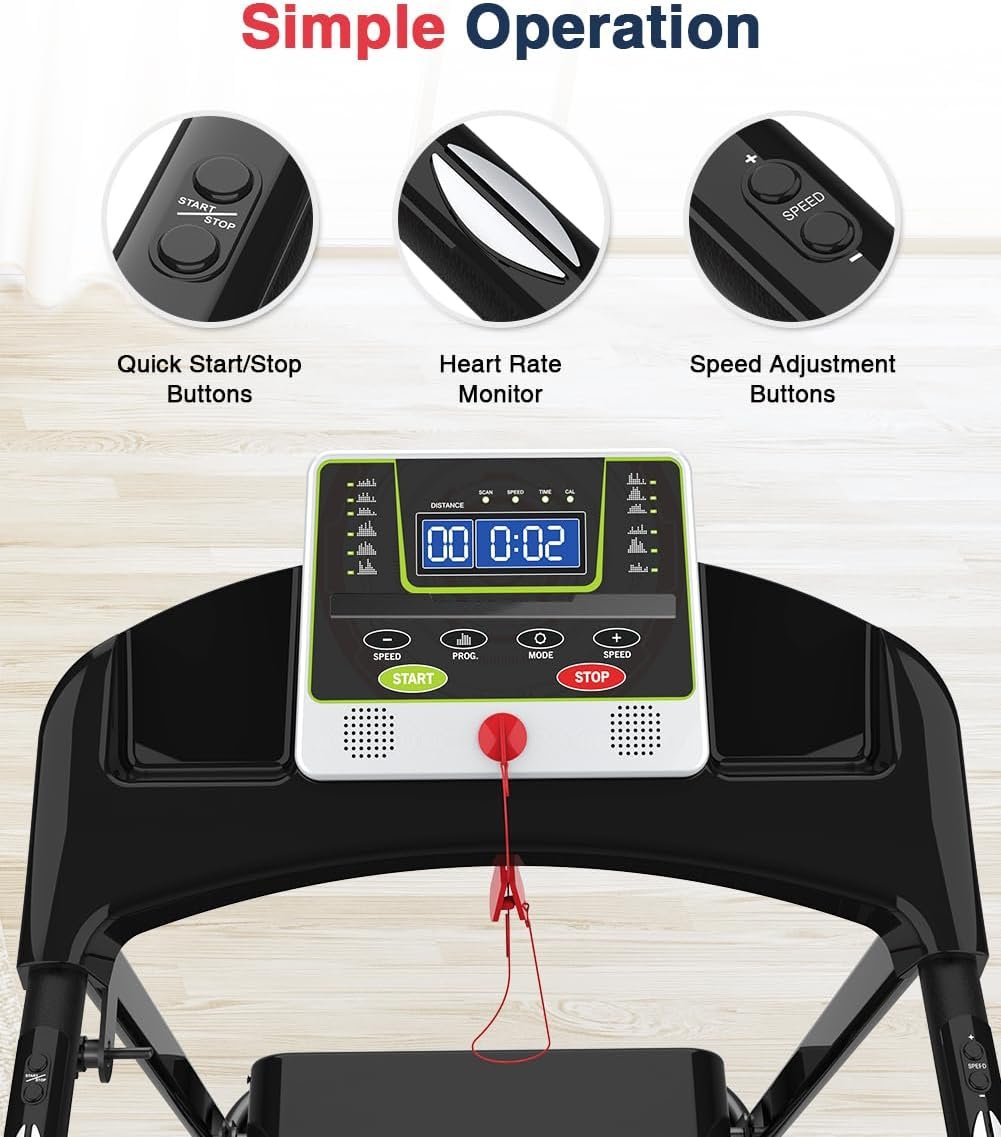 【Stronger Motor & Structure】Walk and jog between 0.5mph and 5.5 mph by using the 2.25-peak horsepower motor on the indoor high weight capacity treadmill. Super powerful motor means quiet and more enjoyment of sports. Compared with other ordinary motorized treadmills, it is speed increment of 0.1mph for better adaptation. Premium materials and stable construction, supports up to 300 lb.