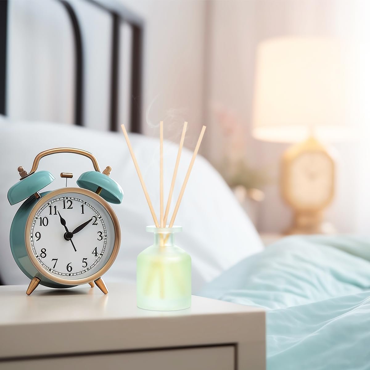 Placing a reed diffuser on the bedside table and dressing table adds more space than any decorative item. Listening to music, reading a book, and immersing oneself in the triple surround scent of sight, hearing, and smell is always closely linked to emotions.