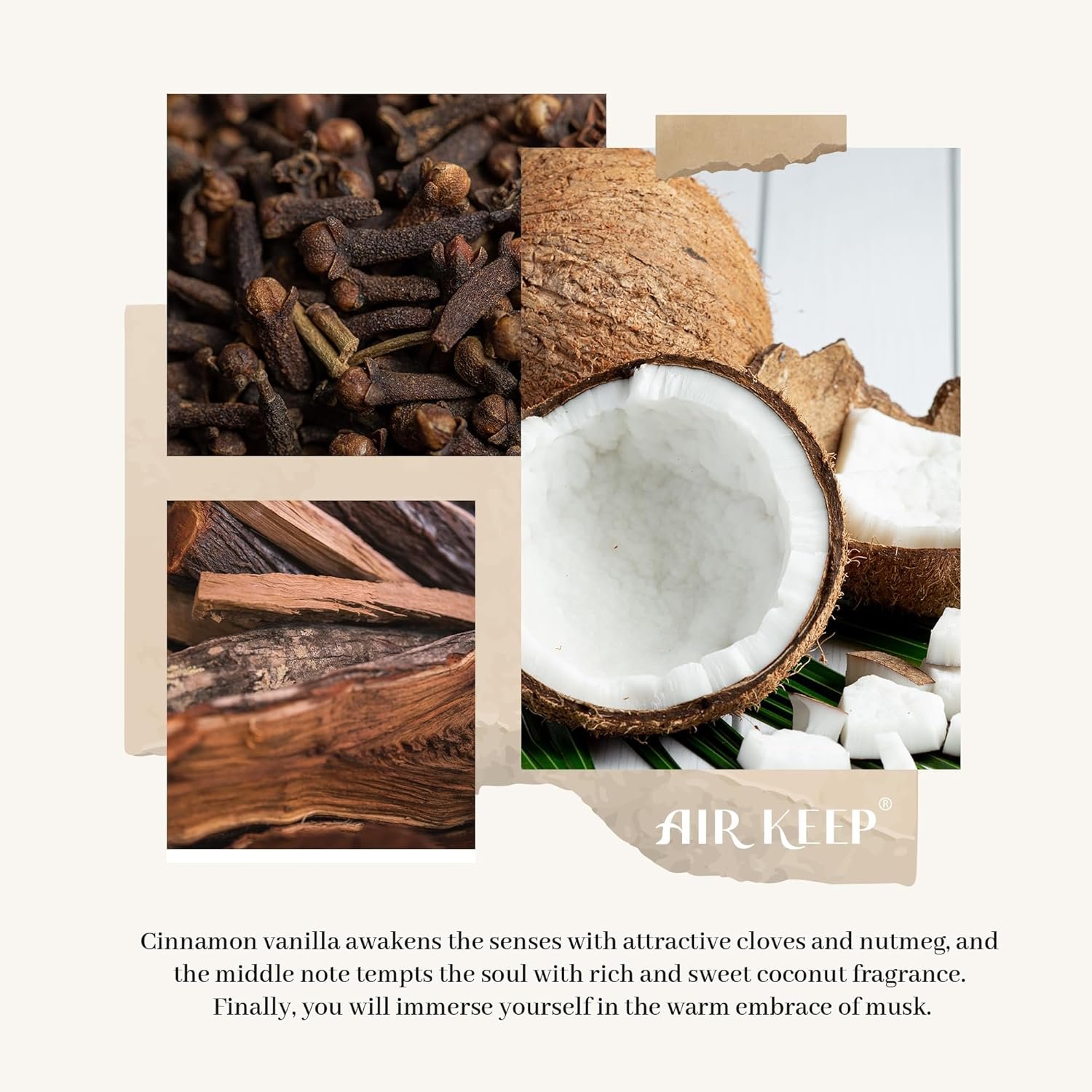 Scent:Cinnamon Vanilla:It awakens the senses with attractive cloves and nutmeg, and the middle note tempts the soul with rich and sweet coconut fragrance. Finally, you will immerse yourself in the warm embrace of musk.
