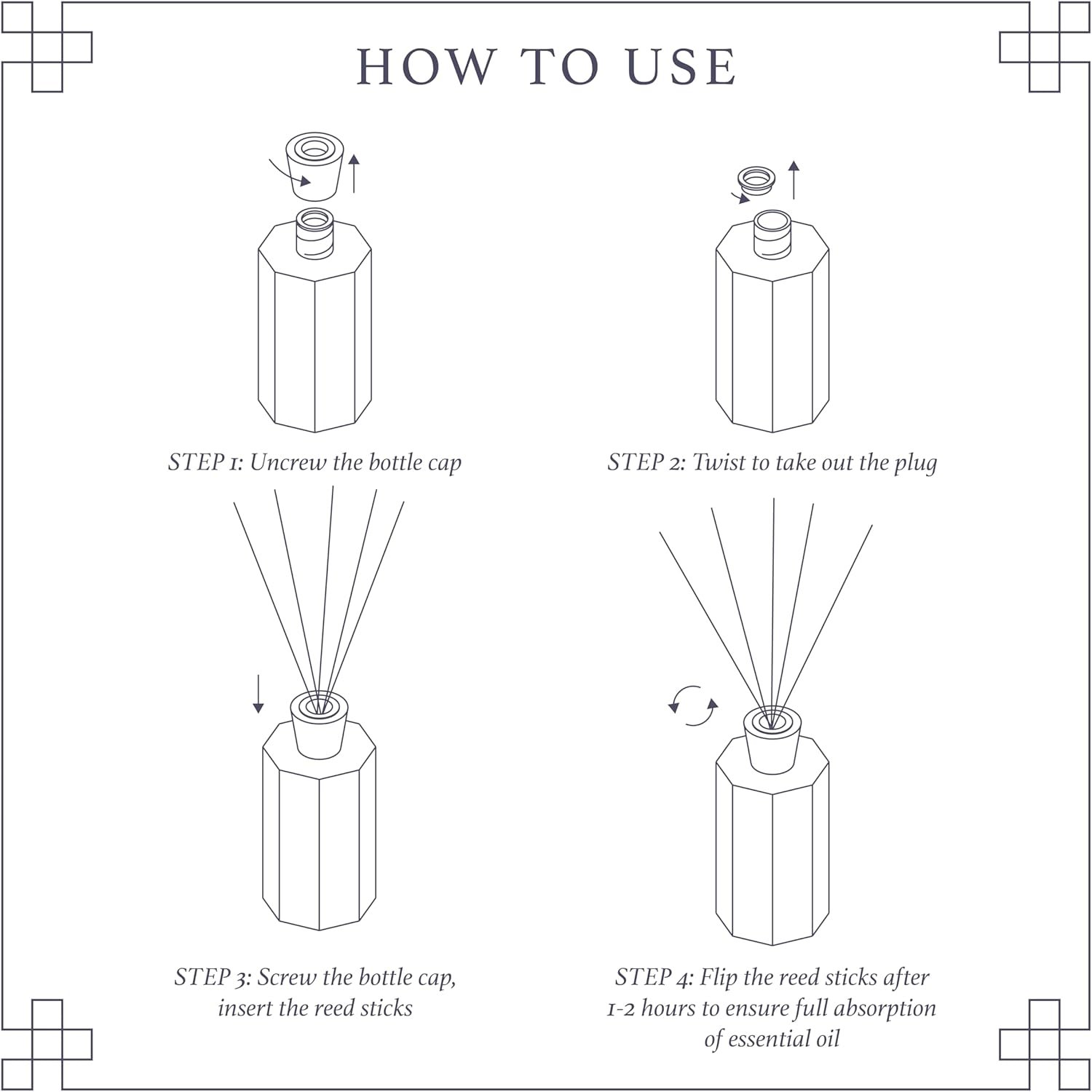 Reed Diffuser Set Includes: 1 glass bottle containing 200 ml / 6.76 fl oz natural plant essential oil; 5 oil diffuser sticks (Aroma amount can be adjusted by the number of sticks inserted)