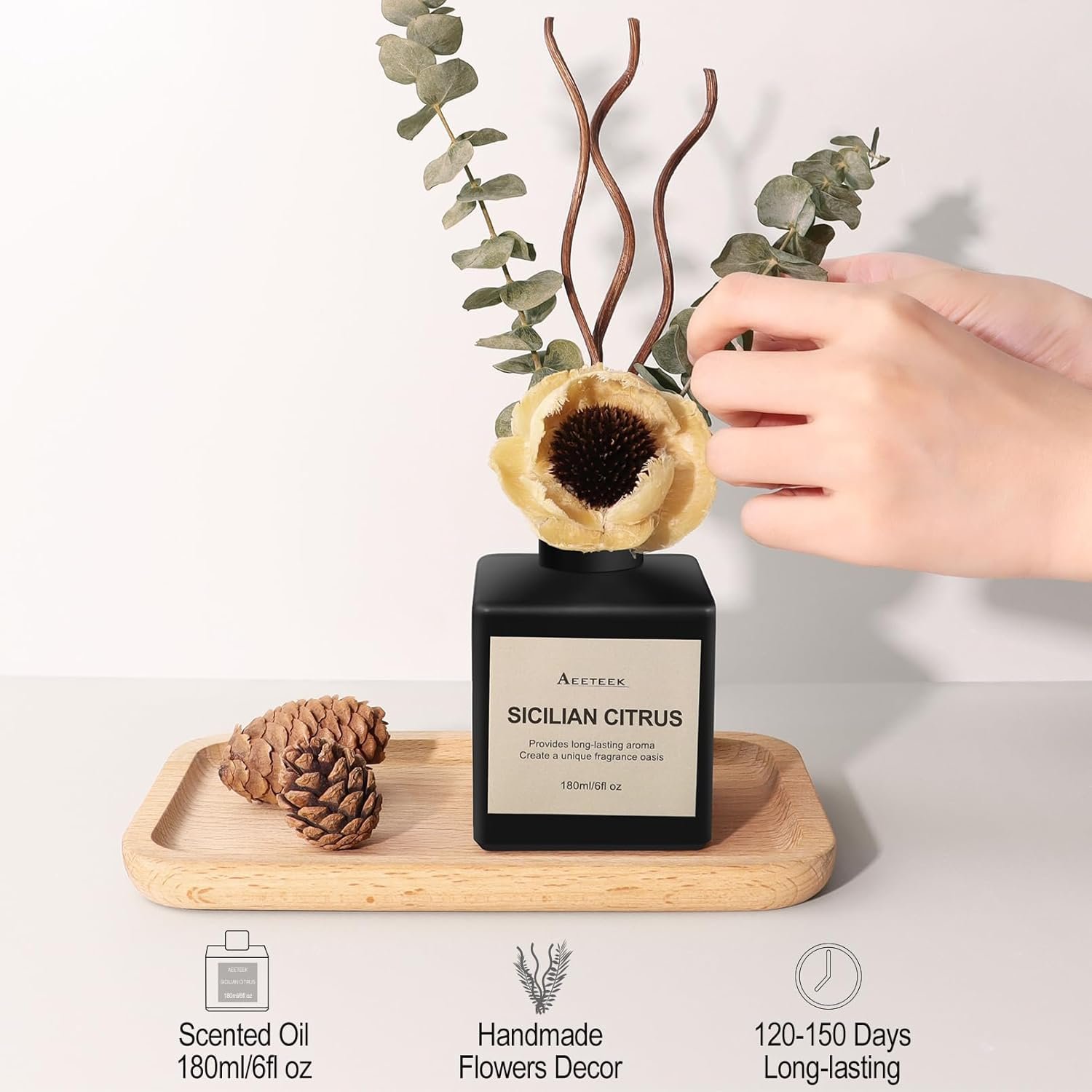 [ LONG-LASTING FRAGRANCE ] 6.08 fl oz(180ml) of fragrance can fill your space for up to 60-90 days. It will evaporate more slowly when placed in indoor places such as bathroom, pet room, bedroom, and laundry room. If placed in ventilated places such as windowsills, sun rooms, and air-conditioned rooms, it will evaporate faster