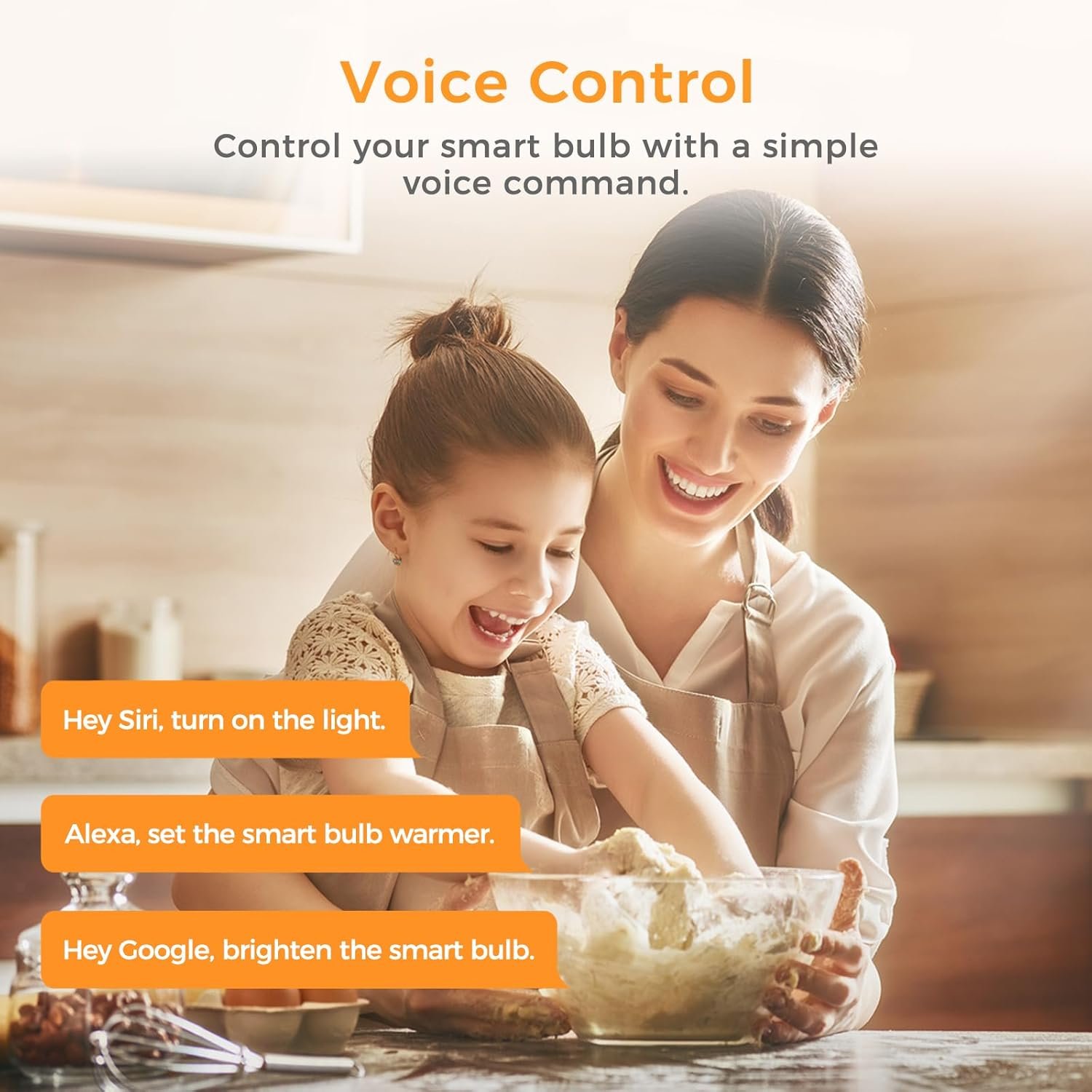 Voice Control: Refoss smart light bulbs 60 watts compatible with Apple HomeKit, Apple Watch, Siri, Alexa Echo, Echo Dot, and Google Home. Control your Alexa light bulb via voice command to turn on/off or dim/brighten your smart LED bulb effortlessly. e.g. ‘Hey Siri, turn the bedroom light to blue’
