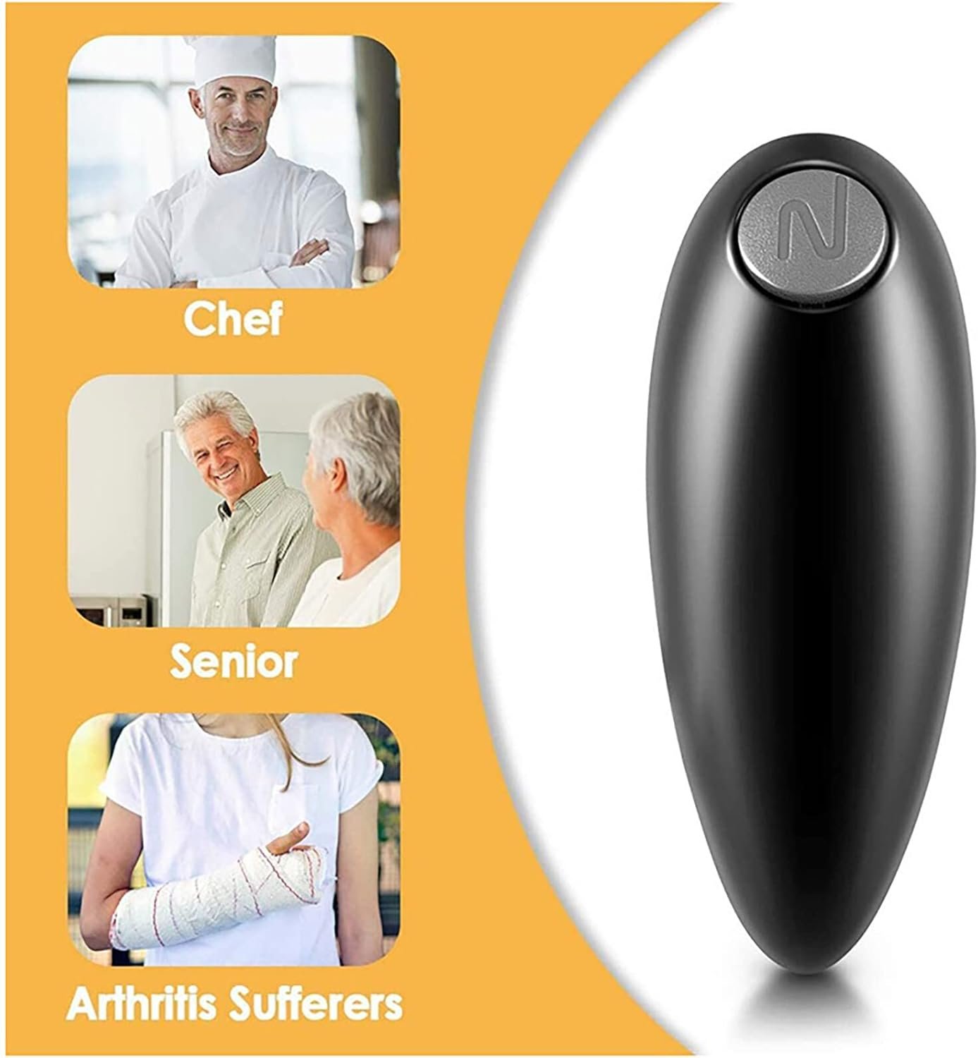 ๐ด ใ๐๐ฟ๐ด๐ผ๐ป๐ผ๐บ๐ถ๐ฐ ๐๐ฒ๐๐ถ๐ด๐ปใ: With Ergonomic Design, this Electric can opener will help u open it without any edges. The compact design allows you to open the can with one hand but is almost completely hands- free. Perfect for left- handed people, disabled people, and individuals with arthritis or hand pain.