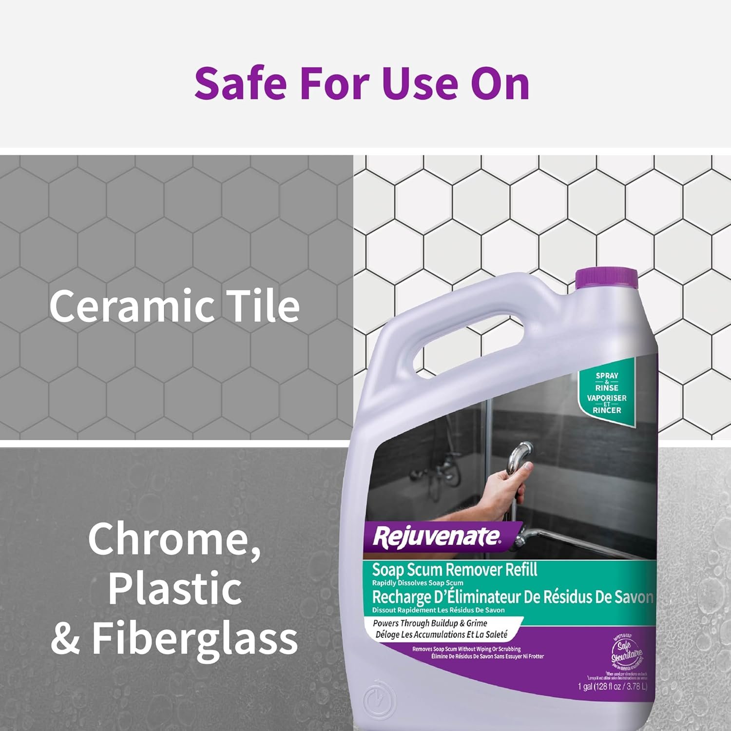 Rejuvenate Scrub Free Soap Scum Remover Cleaning Formula – Spray and Rinse for Streak Free Finish on Glass, Ceramic Tile, Chrome, Plastic and More