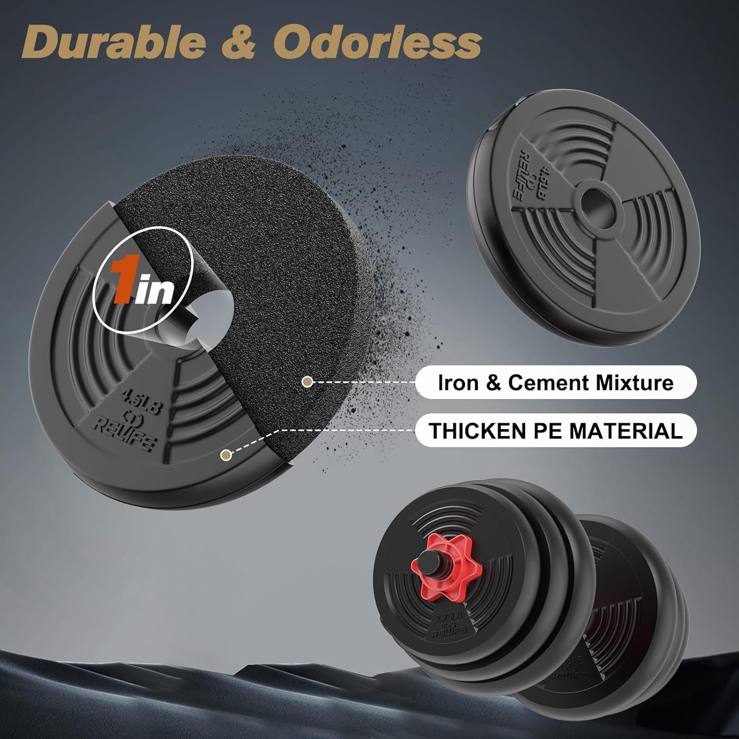 【RELIABLE NUTS ATTACHED】Equipped with thickened and smooth nuts, which are easy to twist, the weights dumbbells set won’t hurt your hands when assembling or using.