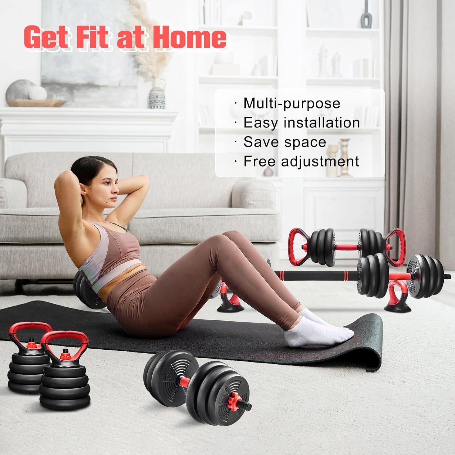 【6 IN 1 MULTIFUNCTIONAL WEIGHT SET】 Solve all your weightlifting worries in one go.With dumbbells, kettlebells, barbells, an AB roller, push-up stands, and barbell stands all included, you’ll have everything you need for a complete workout.