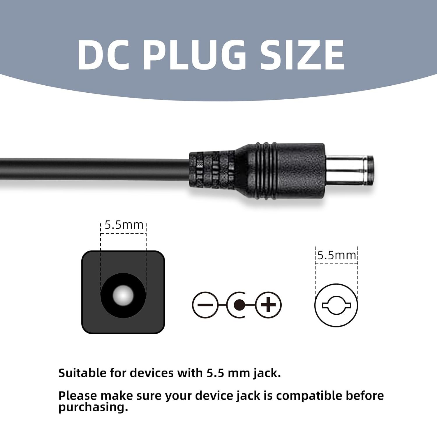 DC jack size: 5.5mm