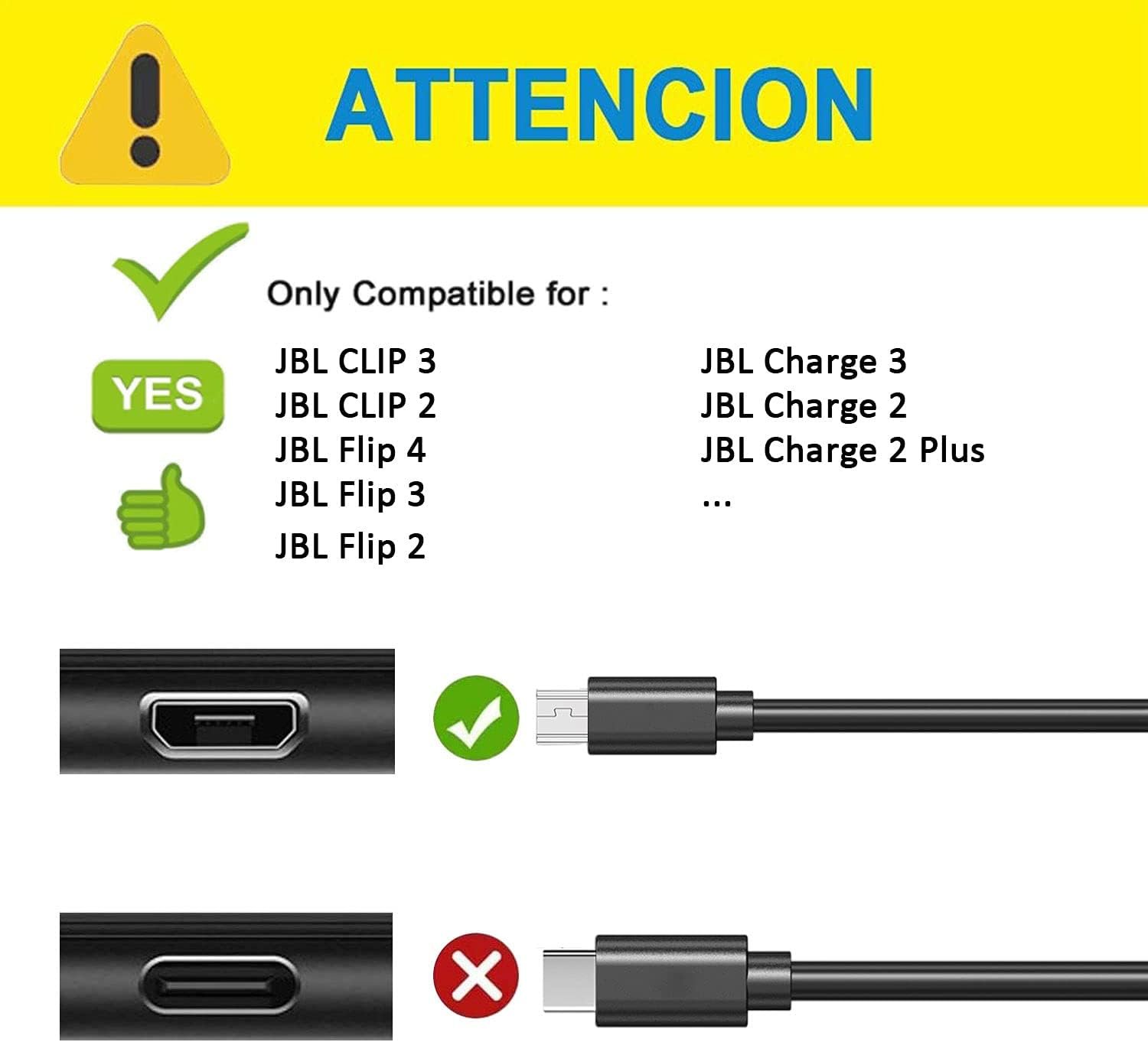 Perfectly compatible: Specially designed charging cable for JBL Portable Bluetooth Speakers, model JBL CLIP 3, CLIP 2, JBL Flip 4, Flip 3, Flip 2, JBL Charge 3, Charge 2, Charge 2 Plus Waterproof Portable Bluetooth Speaker