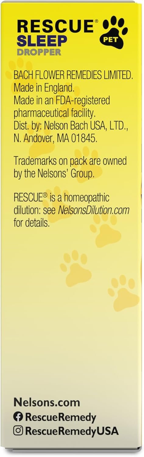 RESCUE PET SLEEP DROPPER: Gentle sleep aid made with the original RESCUE REMEDY PET tincture plus Bach White Chestnut flower essence to calm stressful & restless nighttime behavior & anxiousness