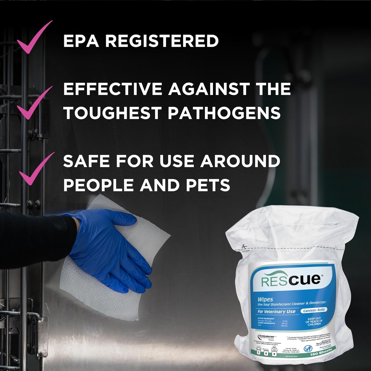 REScue One-Step Pet Wipes – Cleaner for Kennels, Litter Boxes & More, 6×7 Inch Wipes, 160 Count Refill Bag