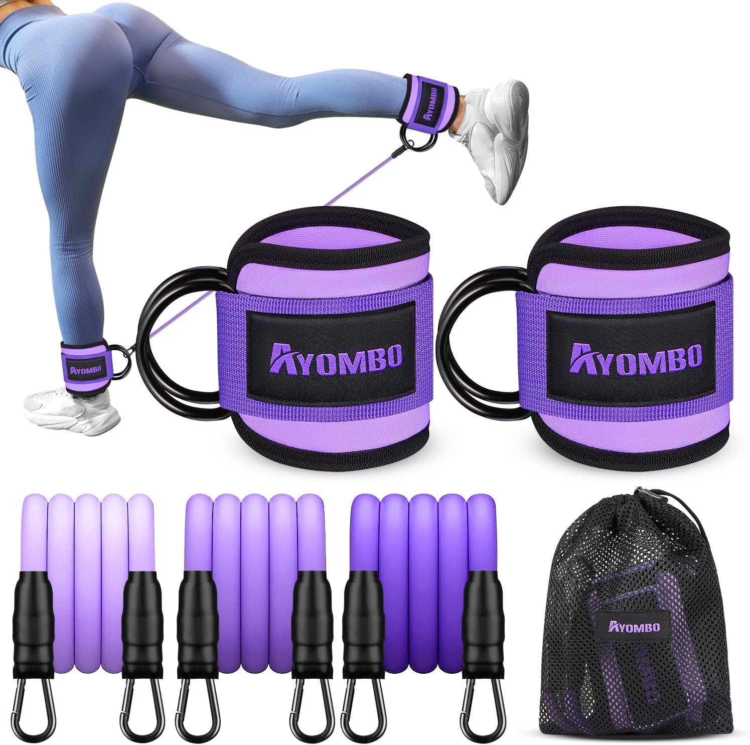 Unmatched Comfort and Safety: Our Ankle Resistance Bands are designed with your comfort and safety in mind. The ankle strap is equipped with a premium quality sponge for ultimate comfort during your workouts. The neoprene ankle pad ensures a secure and comfortable fit, while the double D-ring provides extra stability and peace of mind for your legs and glutes training
