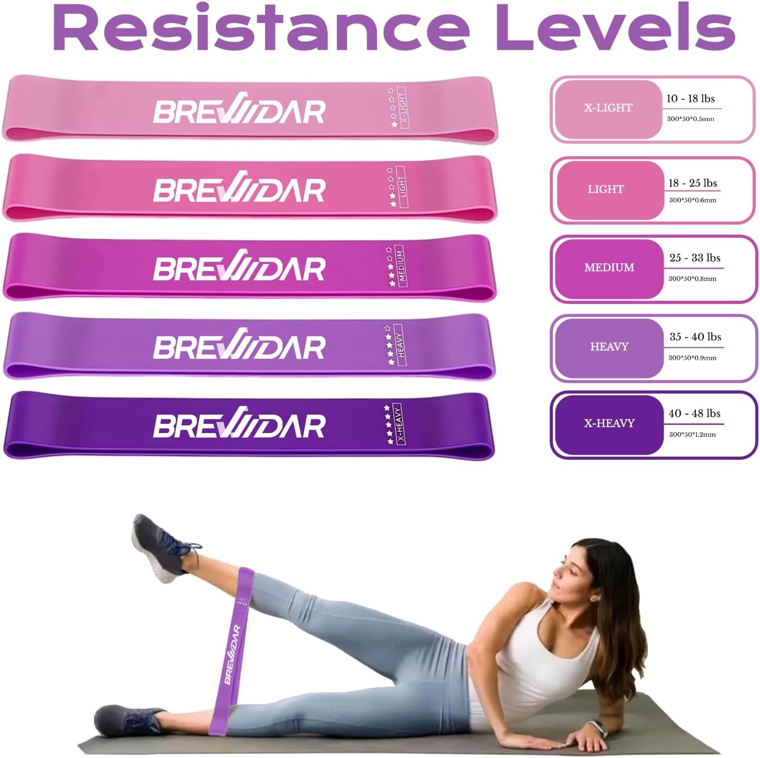 ✔️INTENSIFY DIFFERENT EXERCISES & 5 LEVELS – You can get 5 varying resistance levels 10-40 LB, 12″ by 2″ heavy duty loop resistance bands. Our extra light and light bands are great for beginners, while our medium, heavy, extra heavy exercise bands are targeted for more intermediate and advanced strength training. 8-12 reps of each exercise is the right level for you.