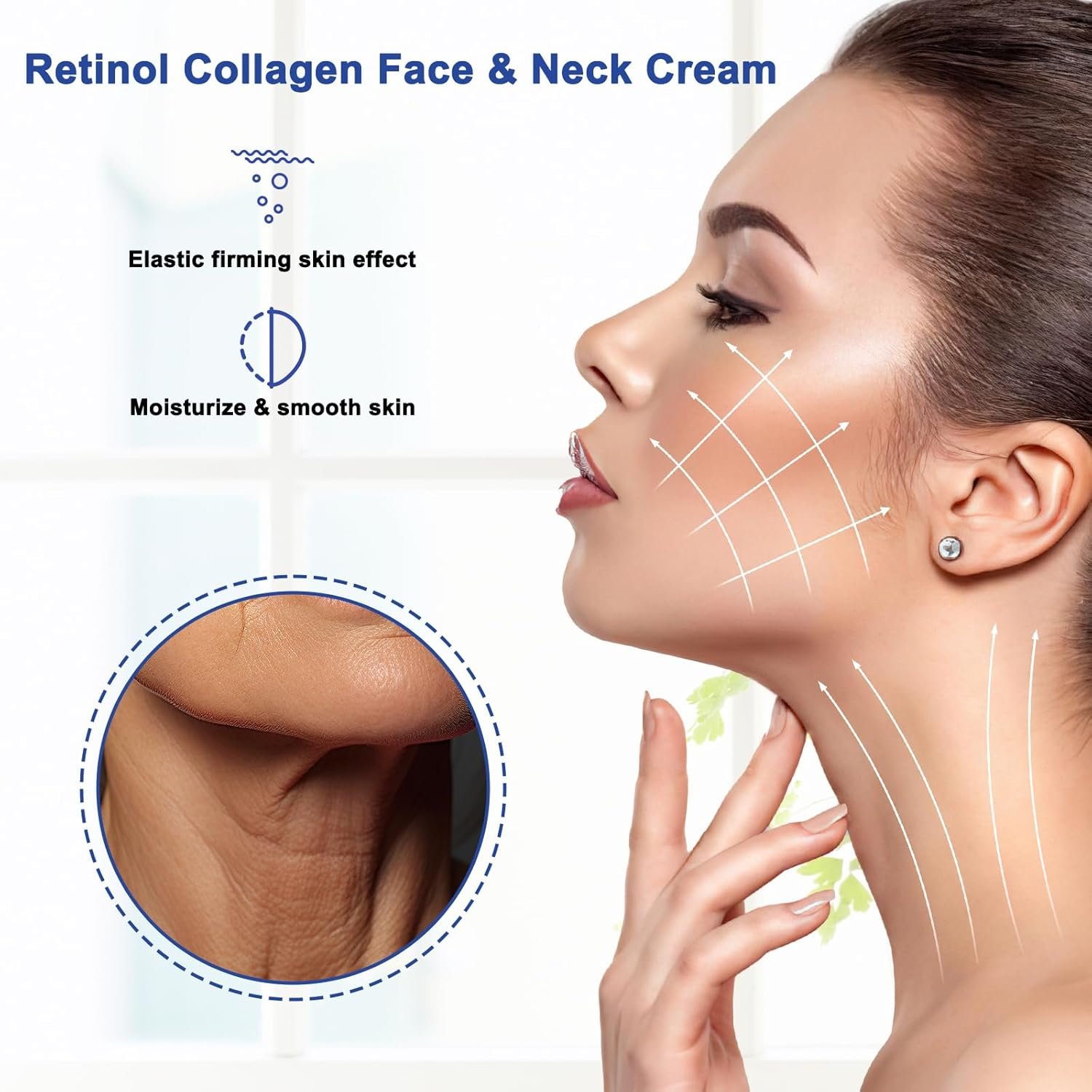 【Anti- Aging Face & Neck Retinol Cream】Neck Tightening Cream is a Moisturizer Face Cream enriched with Retinol Collagen and Hyaluronic Acid that effectively targets the signs of ageing, providing your skin with hydration and firmness, helping to restore radiance and elasticity, reducing fine lines and smoothing out wrinkles, over time you will begin to visibly notice the visible results on your skin, experience the miraculous benefits of Retinol Face Cream for a fresh and renewed complexion