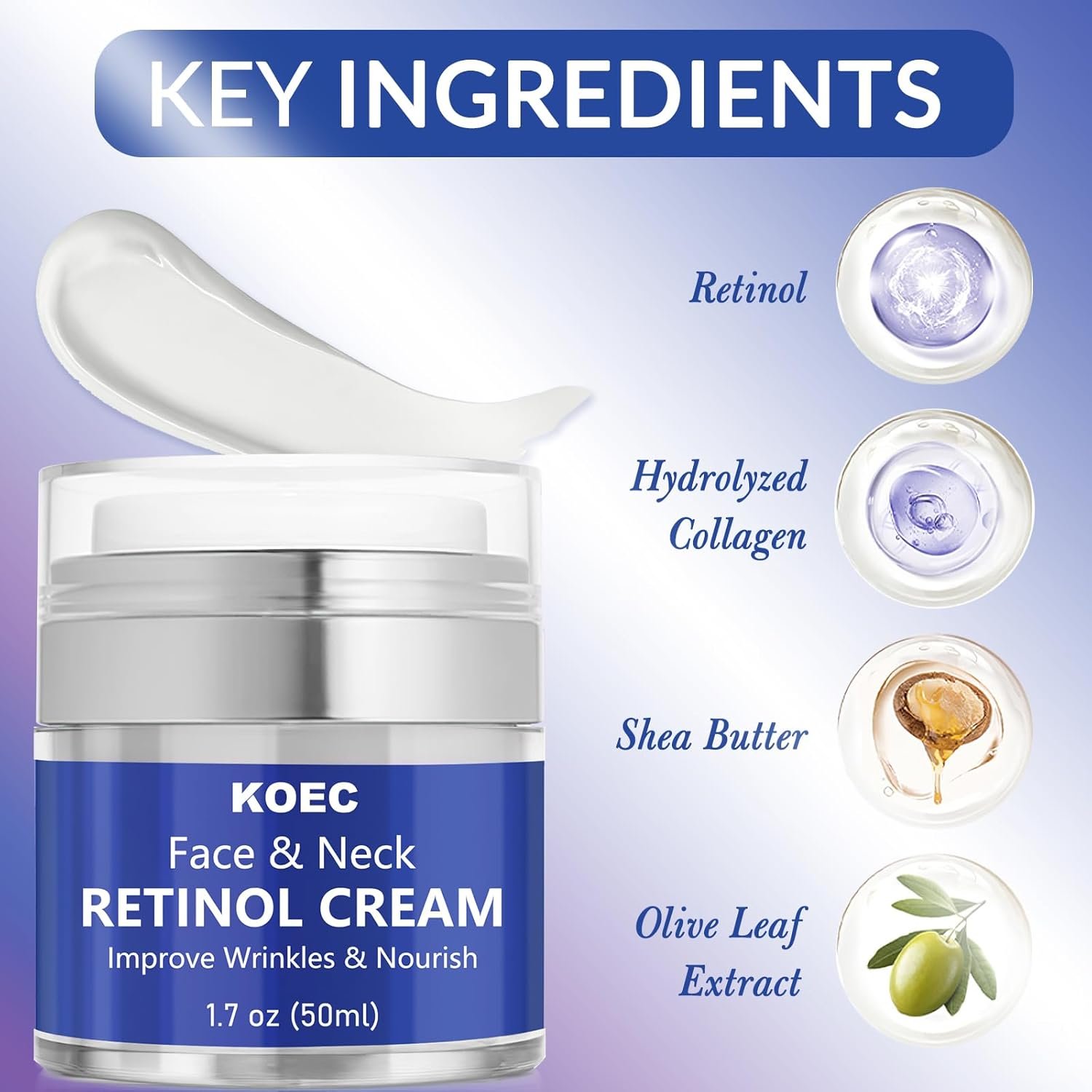 【Firming and Lifting Action】Our Collagen Cream firms and lifts the skin on the face and neck, Retinol Cream boosts cellular metabolism to address sagging skin and restore elasticity and firmness, it can help to minimise the appearance of wrinkles and fine lines, making the skin look younger and firmer, and it’s a versatile choice for anyone wishing to take on the signs of firming, lifting, and anti ageing
