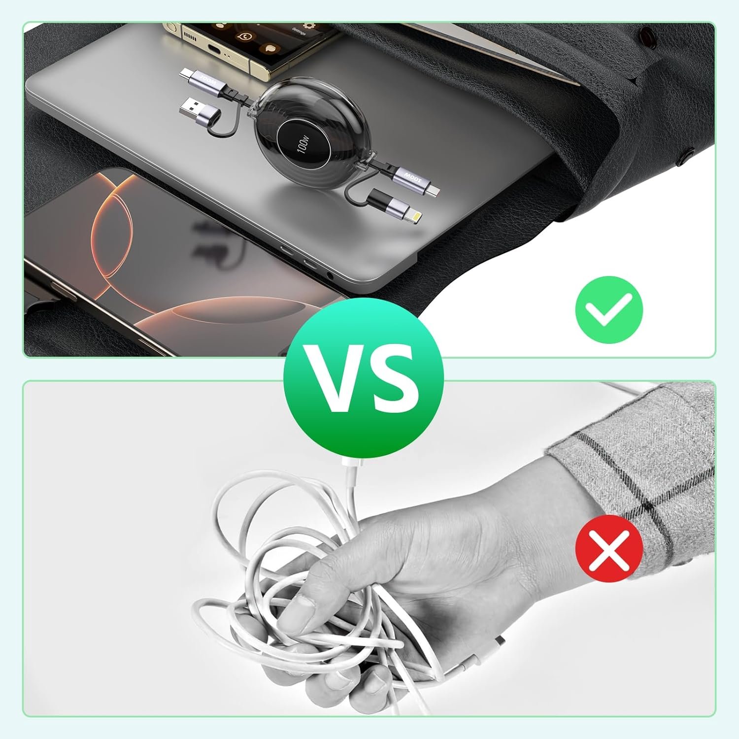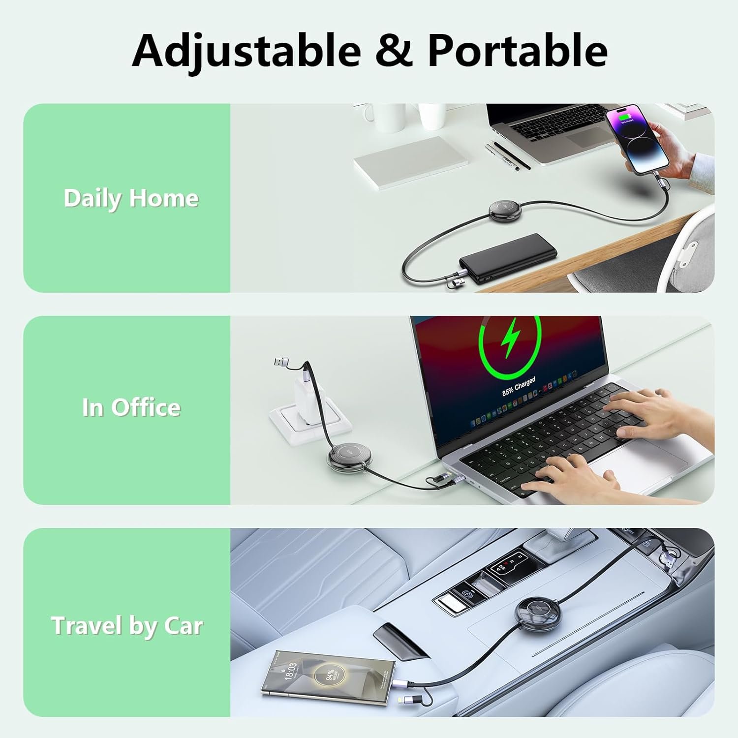 【Traveling Essential:Adjustable Length & Retractable】 It can extend from 0.4ft to 4ft and adapts to different daily situations. Adjustable length prevents charging cables that are too short to charge when you are in the coffee shop or meeting room. With a retractable design, you just pull out both ends of the cable at the same time, it will automatically retract to the original position. Easy to place in your handbag, laptop bag, or pocket