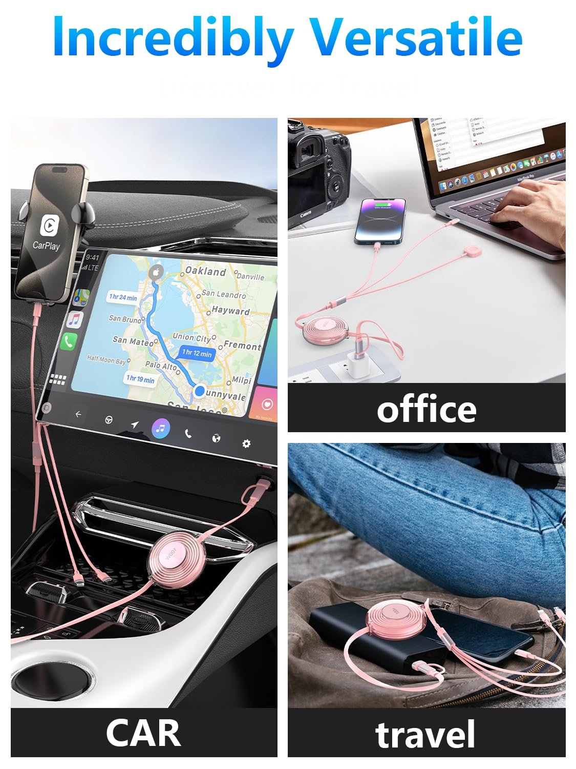 ❤️【High-Quality Material & Service Team】 travel electronics retractable iphone charger cord uses highly elastic flat TPE material for extreme durability and flexibility, which endures more than 10,000 tensile tests without worrying about getting stuck. Opluz provides 24 hour Online Customer Service. Please contact us with any questions or concerns