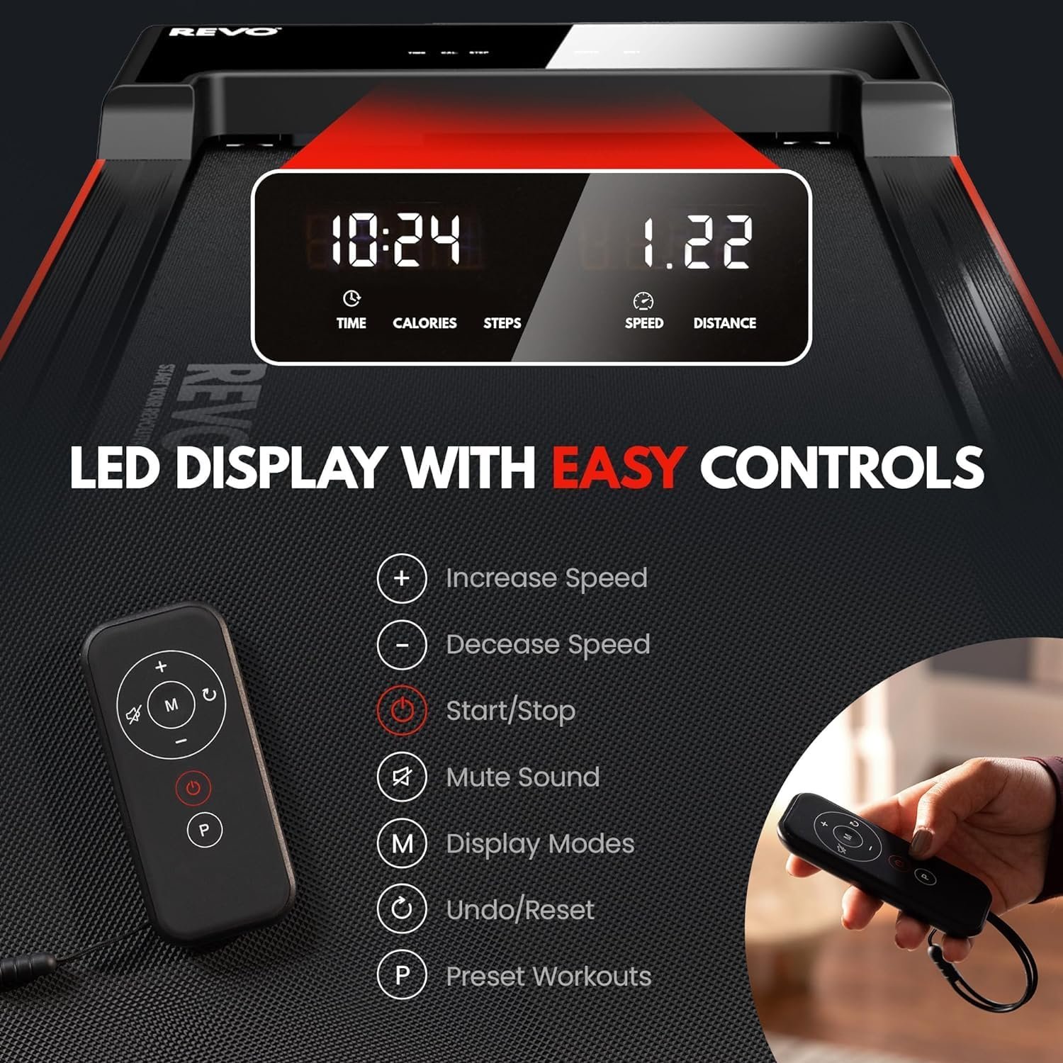 🏃♂️ REVO WALKING PAD TREADMILL: The REVO Jogger is the best portable treadmill for home or office. It’s never been easier to get your 10,000 steps each day at speeds up to 4mph, an ideal walking/jogging pace for most adults