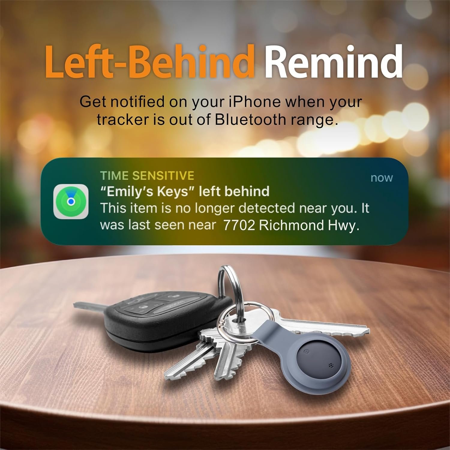 【Left-Behind Remind】: Receive notifications on your iPhone when the tracker is out of Bluetooth range. Use the Find My app to view the tag’s recent location on a map. (Free app, without any subscription fees.)