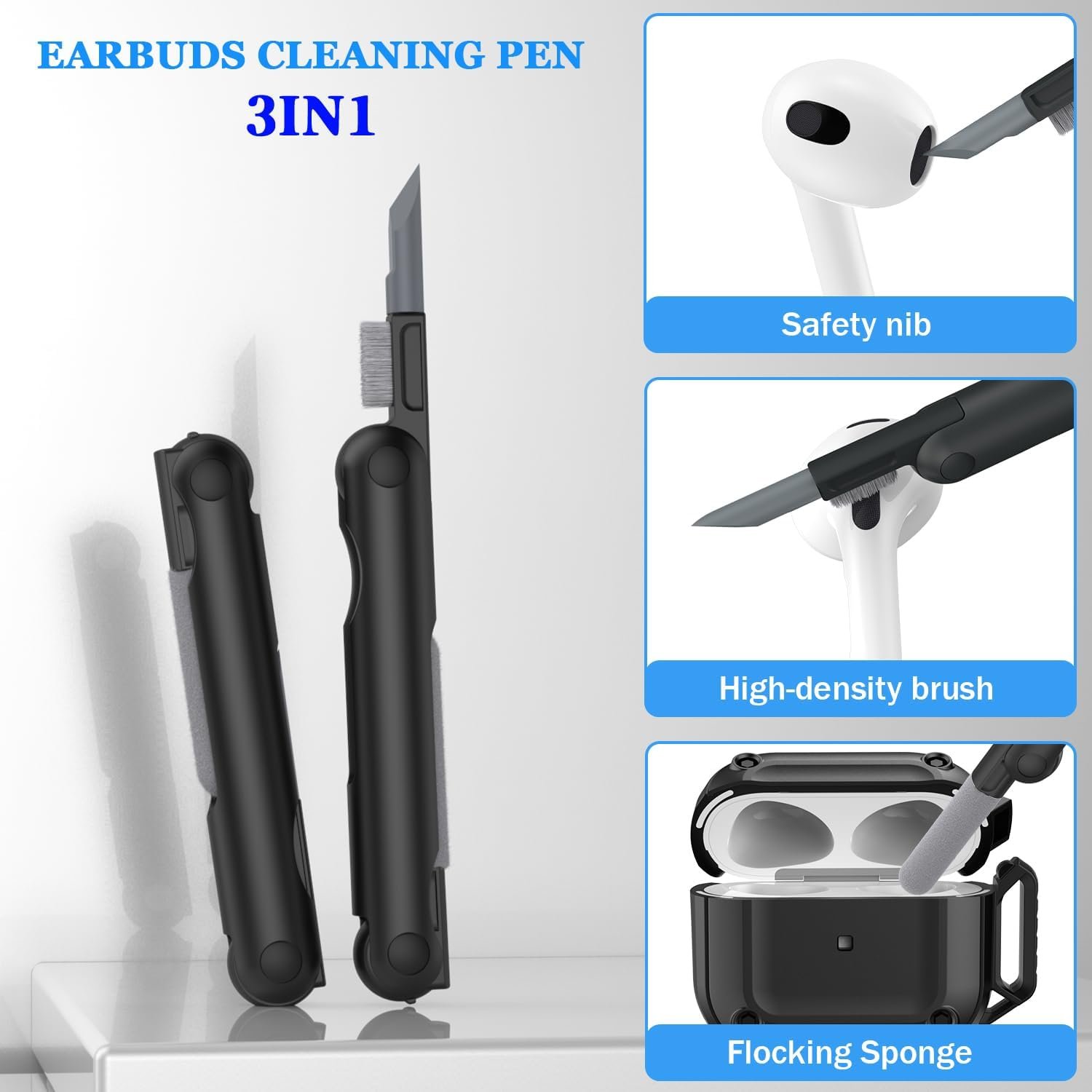 Multi-functional Cleaning Pen: The Airpod cleaning Kit has Silicone nib to remove dirt from hidden cracks and holes. The soft flocked sponge absorbs fine dust inside the wireless earbuds charging case. The high-density brush can easily clean the dirt on the sound hole of the earphone.