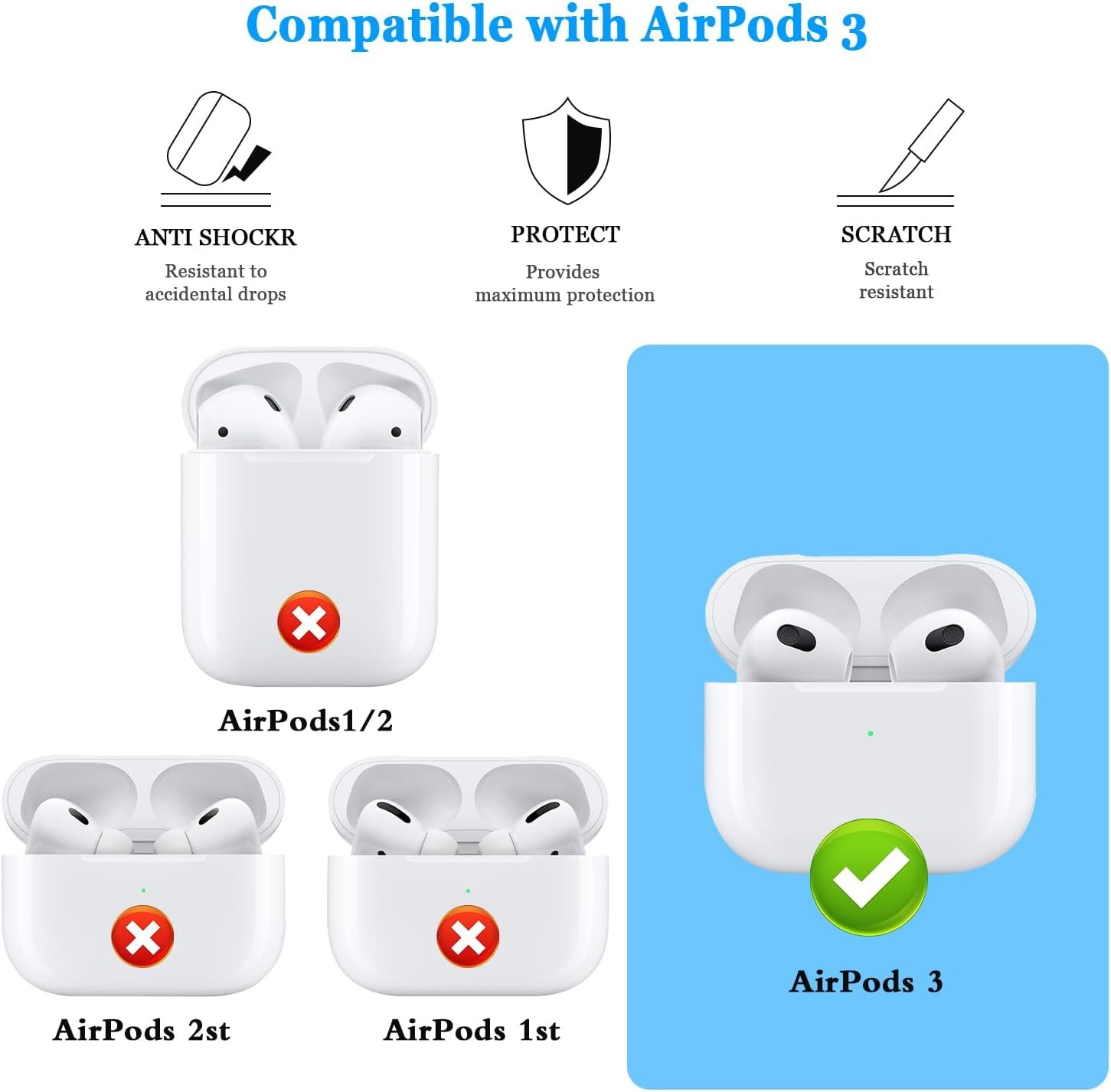 Compatible with: Apple AirPods 3rd Generation Case, it’s not for AirPods 1/2 and AirPods Pro series. Supports both wired and wireless charging, no need to take off the case to charge. Front LED indicator light can be seen during charging.