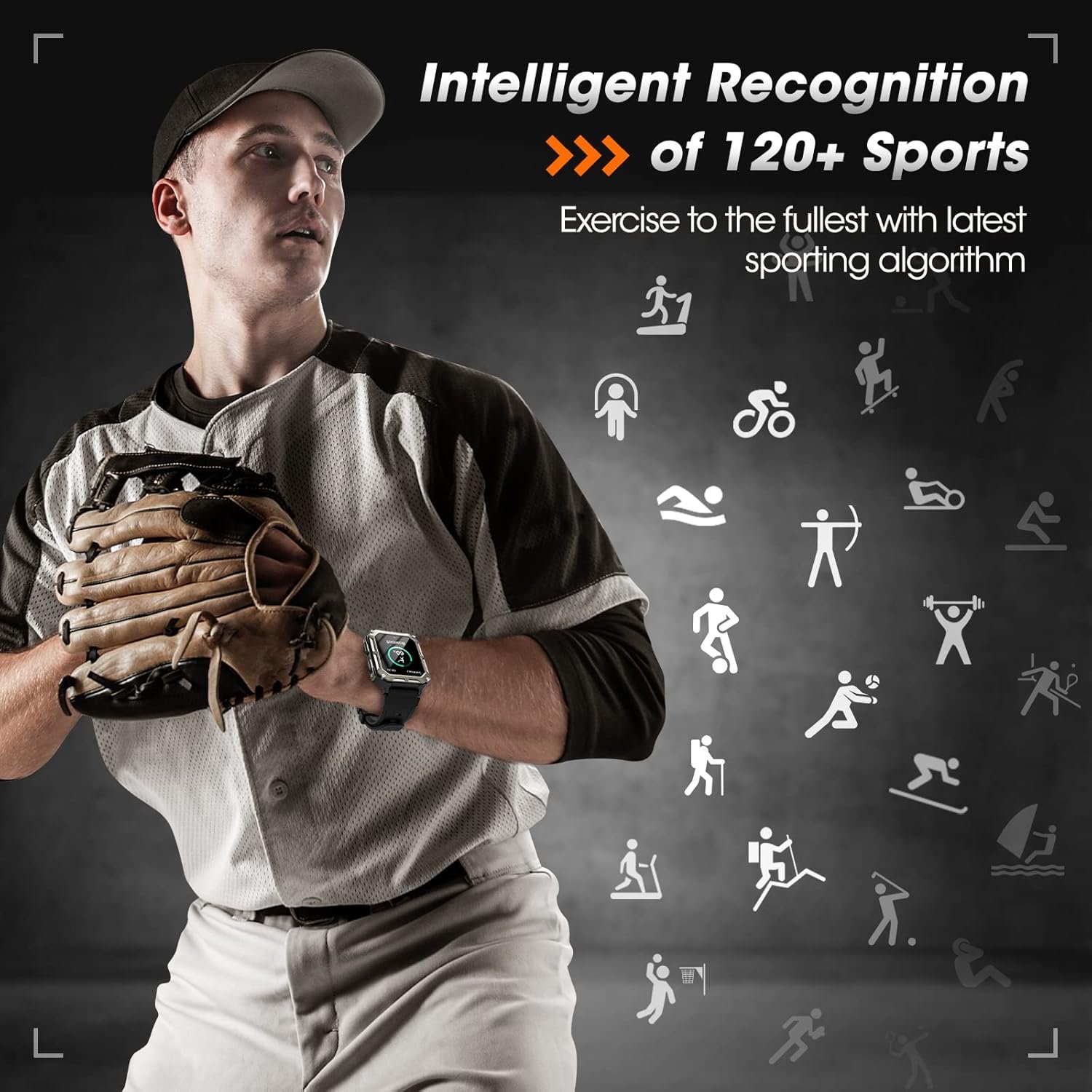 DESIGNED FOR OUTDOOR AND INDOOR SPORTS–The pedometer smart watch supports 120+ sports modes, it can track your calories, steps and distance, you can easily customize and change up your routine. The rugged men’s exercise smartwatch has got through IP69K rating test, with static waterproof to 100m, you can wear it for all day-to-day water sports and activities, such as swimming, diving, surfing