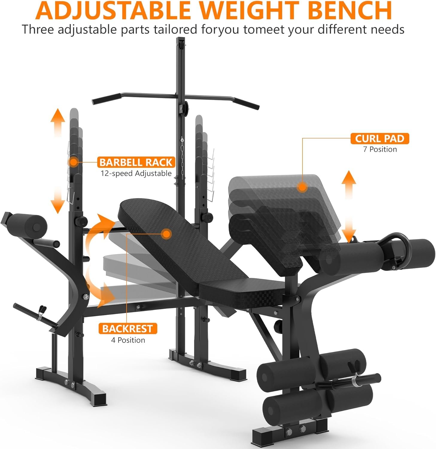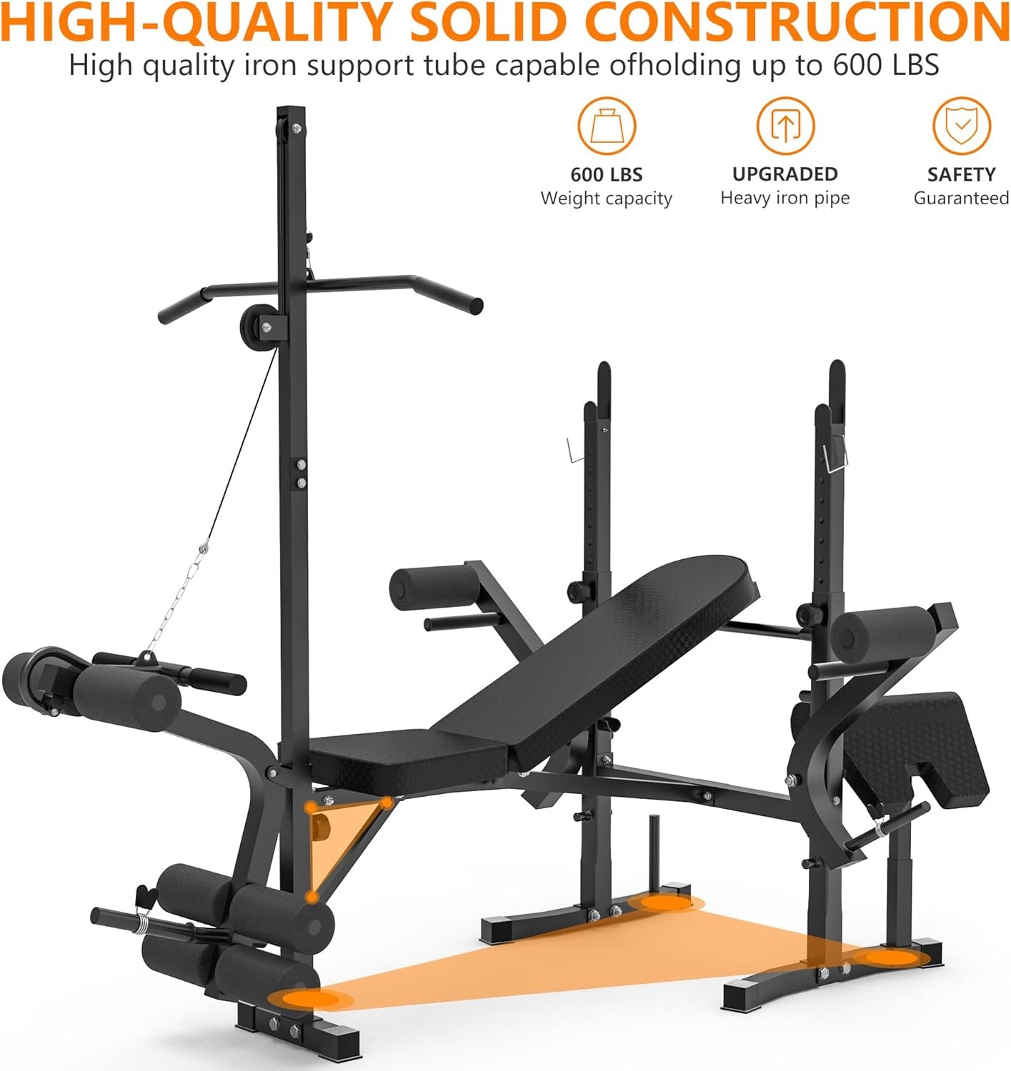 【Multi-Function Weight Bench】 Rigel weight all-in-one fitness equipment includes an adjustable leg developer, a barbell rack, and a weight bench, allowing you to do lever bench press, one-arm dumbbell row, dumbbell press, leg flexion & extension, sit-ups and more. A variety of workouts to help you get an effective full-body exercise.