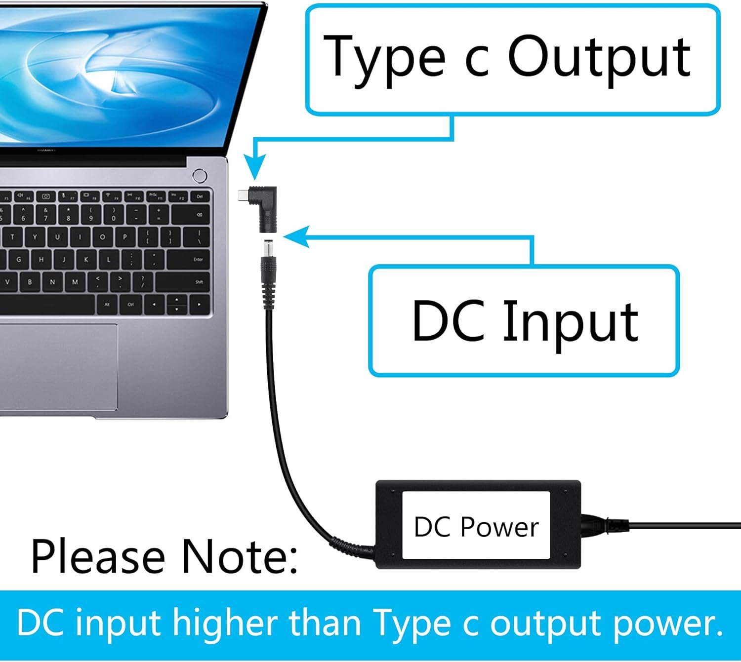 【Product Function】The DC port is converted a usb c port to quickly power USB type c devices, perfect solution to the problem that the dc power adapter cannot power the type c port.