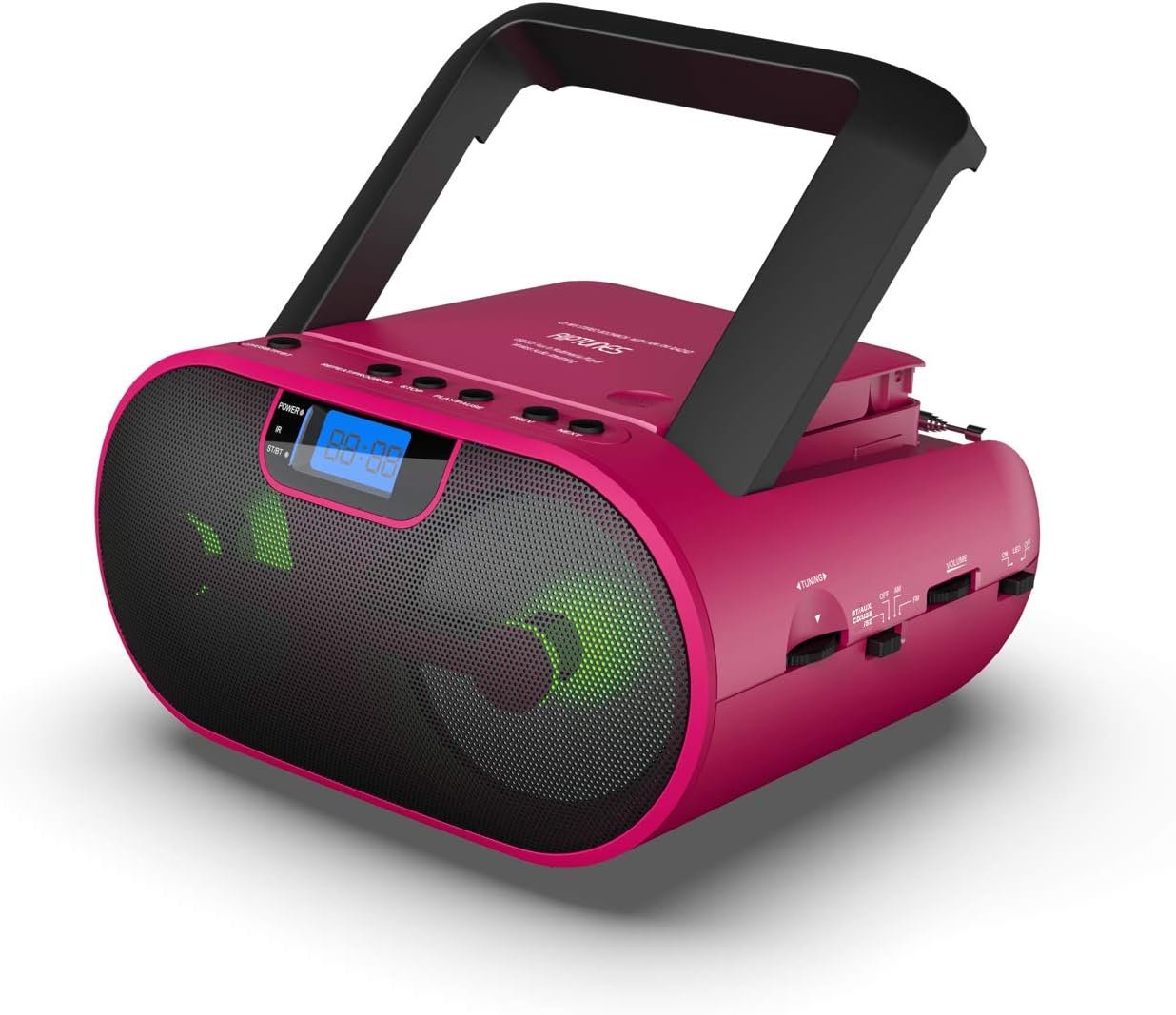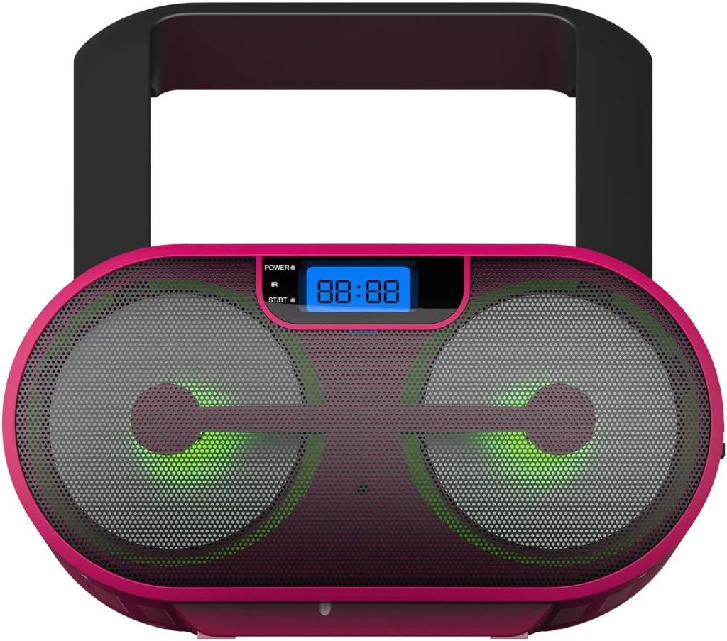 Riptunes CD Player Boombox Portable Radio Digital AM/FM with 20 Preset stations, Bluetooth Boombox Enjoy The wireless Streaming or play you Music through one of the other options. This Boombox offers, CD, MP3/CD, USB, mSD, Aux, with LED color Flashing Lights, Headphone Jack Stereo Sound System with Enhanced Bass, LED LCD Display with Remote.
