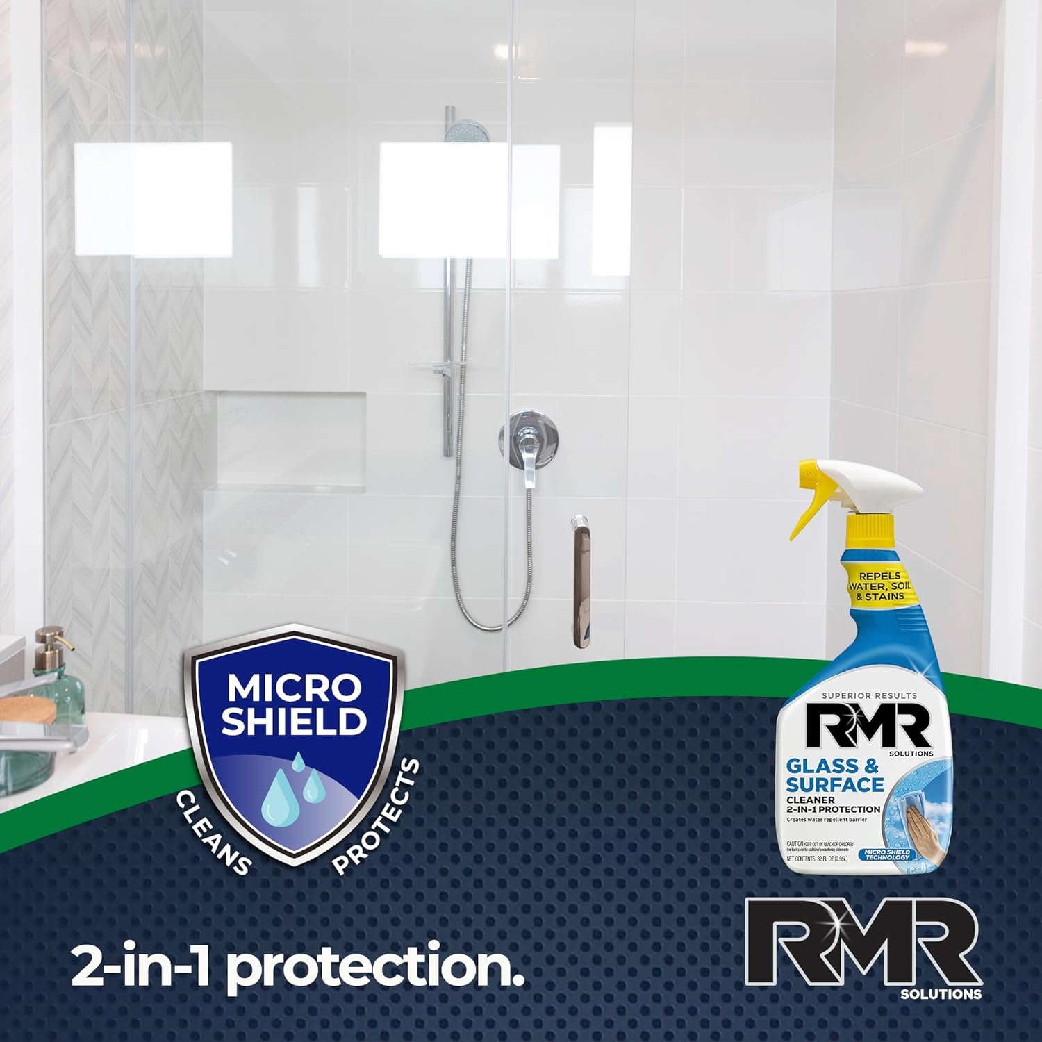 RMR – 2-in-1 Glass and Surface Cleaner Plus Repellent, Streak-Free Multi-Surface Treatment, Cleans & Repels Water Spots, Soil, & Stains, 32-Fluid Ounce Spray Bottle