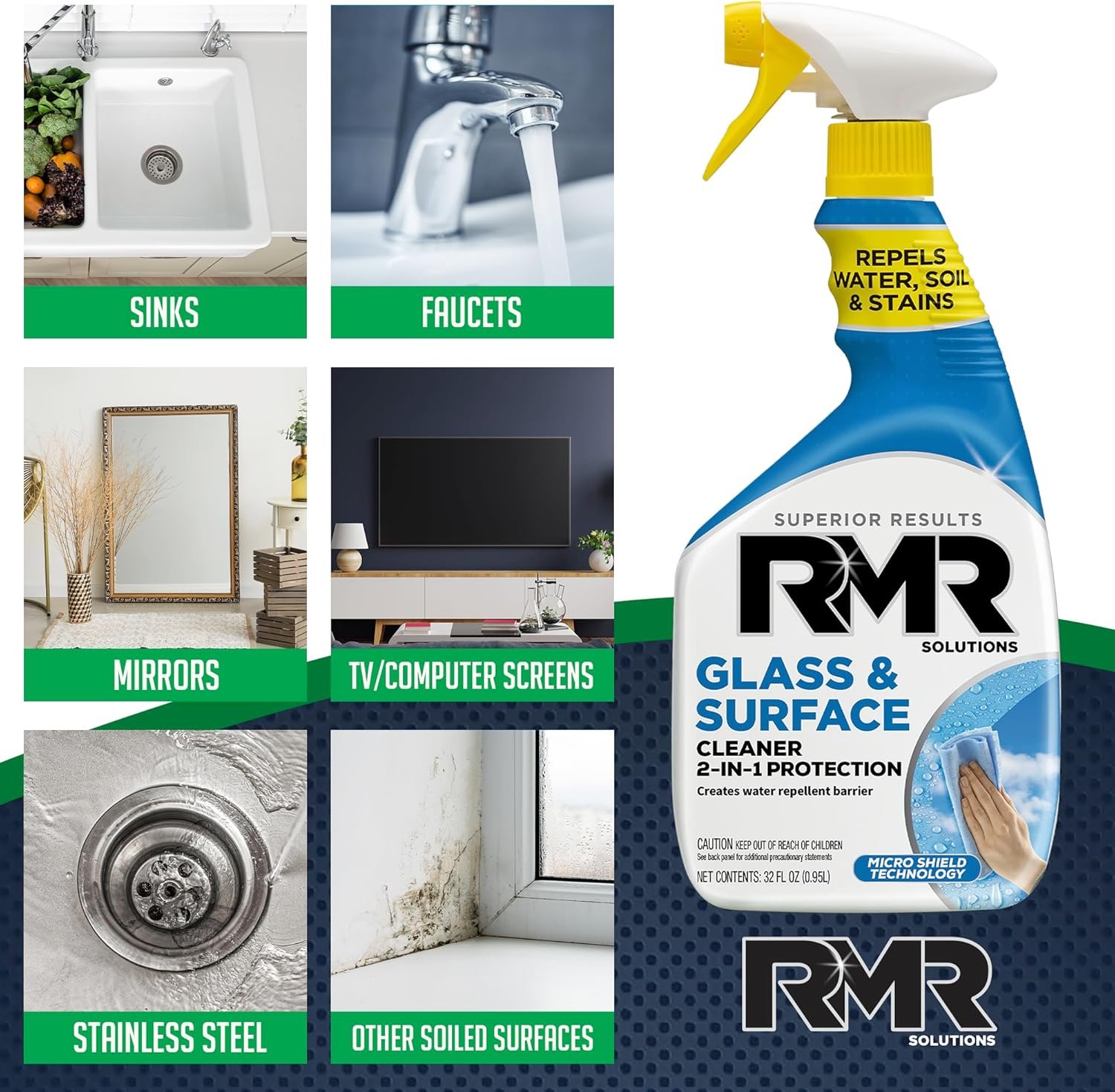 MADE IN THE USA: RMR – 2-in-1 Glass and Surface Cleaner Plus Repellent is proudly made by cleaning and stain removal experts in the USA using top-quality, highly-effective ingredients