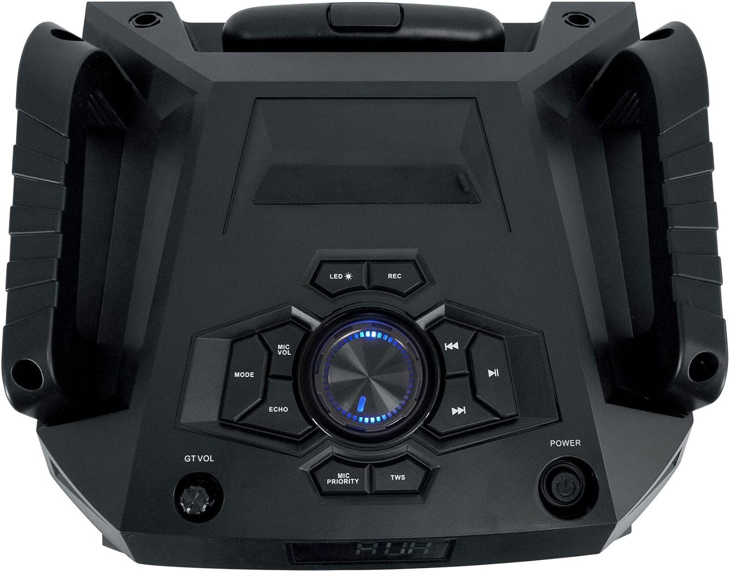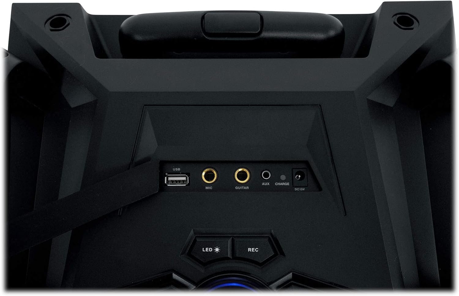 Guitar Input Volume Control. Mic Volume and Echo Controls. Built-In Wheels and Carry Handles for Easy Transport. Bluetooth Pairs in Under 4 Seconds and Has A 35 Foot Range with crystal clear reception. Bass/ Treble/ Master Volume Controls. Record Function Will Record Your Output Onto the SD Card or USB drive.