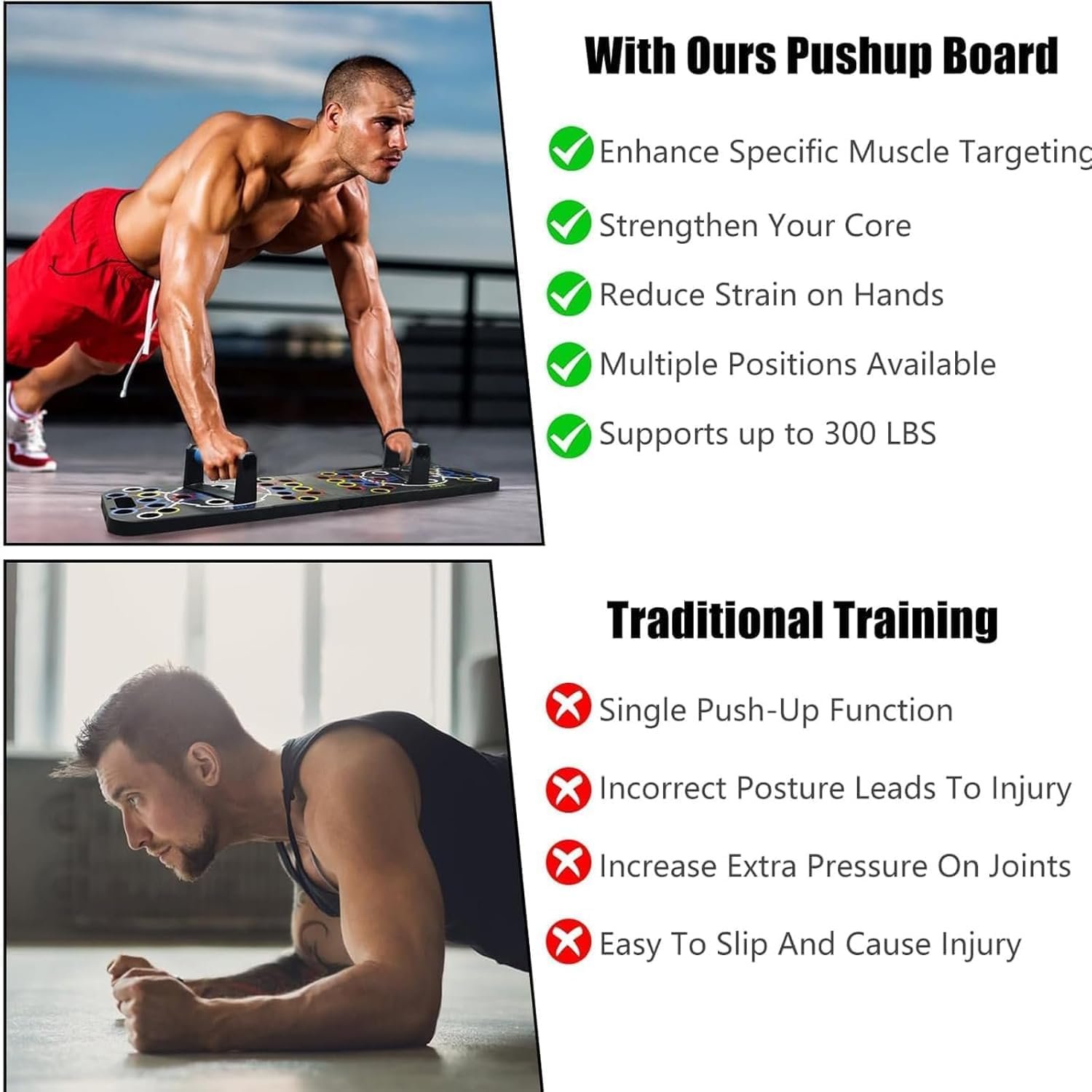 Suitable for All Fitness Levels : Designed for both beginners and experienced fitness enthusiasts, this board features color-coded slots to help you customize your push-up routine. Target specific muscle groups like the chest, abdomen, arms, and back for a more effective workout.