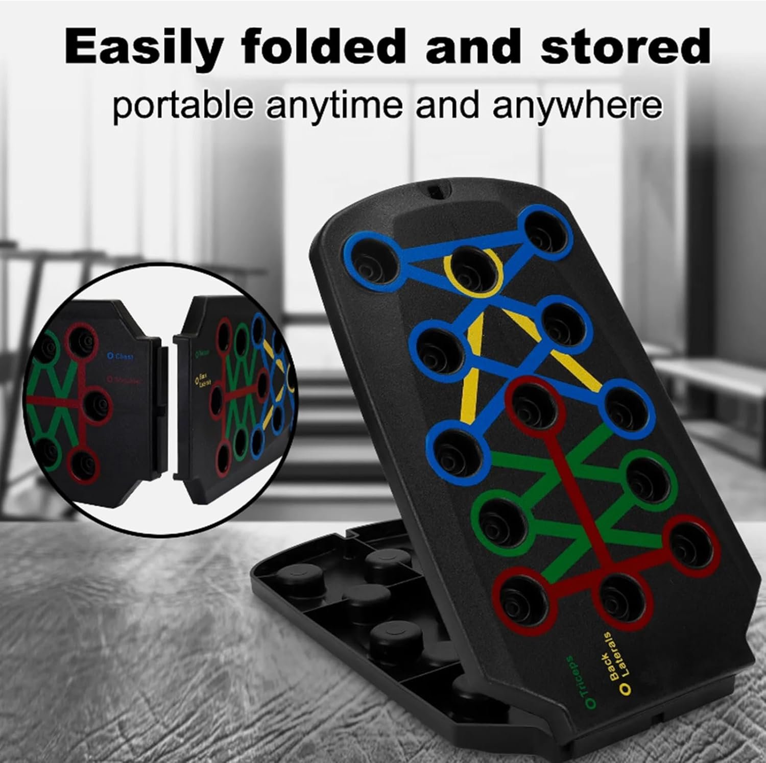 Portable & Foldable: Effortlessly portable and compact enough for both household use and travel, The Push-up Board is made from high-quality, durable materials and can support up to 300 lbs (136 kg)