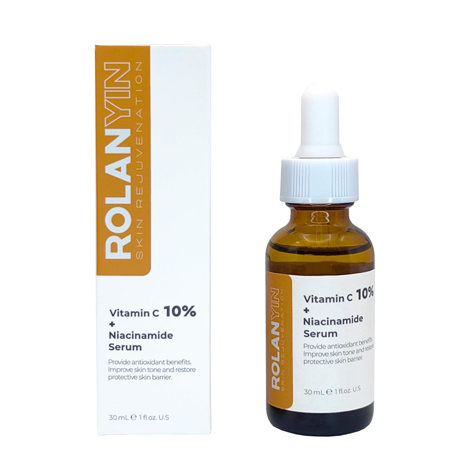 ROLANYIN Vitamin C 10% + Niacinamide Facial Serum Hydration Reducing Fine Lines Wrinkles Skin Firming Anti Aging Formula Boosting Radiance Improving Texture Skin Care