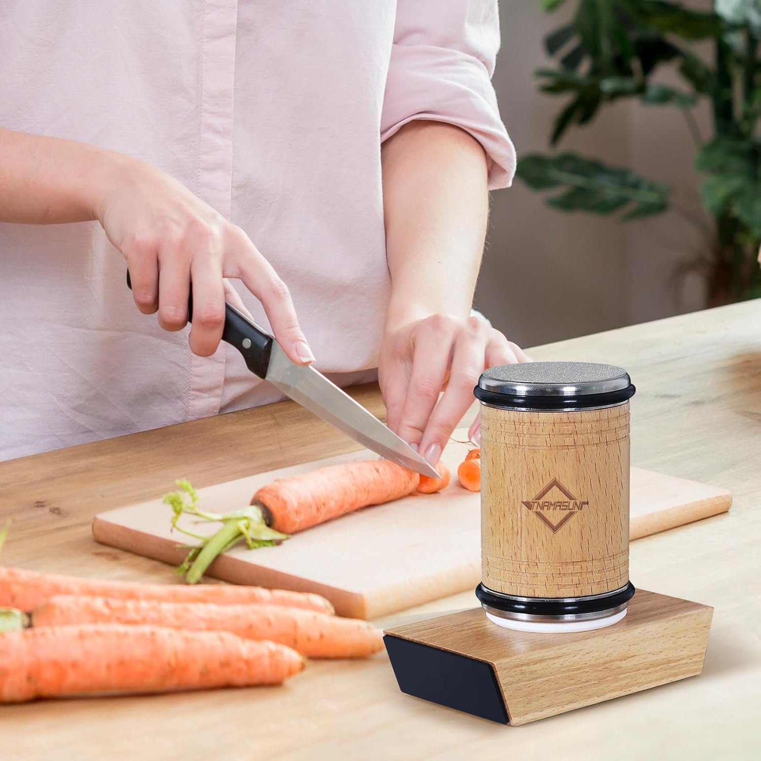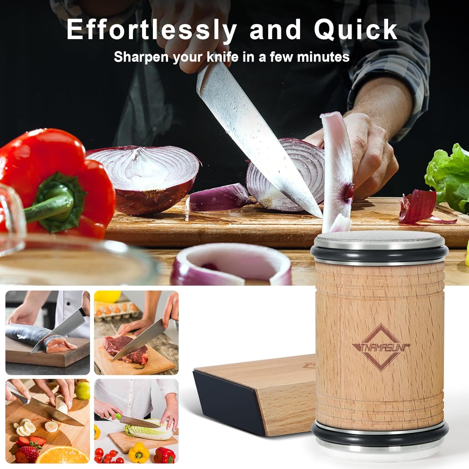 【High Quality Wood & Strong Magnets】Our Rolling Knife Sharpener kit is made of high-quality wood. The bottom of magnetic knife holder add anti slip strips and Powerful magnets stay knife motionless, so you will always get a fixed Angle on the entire cutting edge for sharpening.