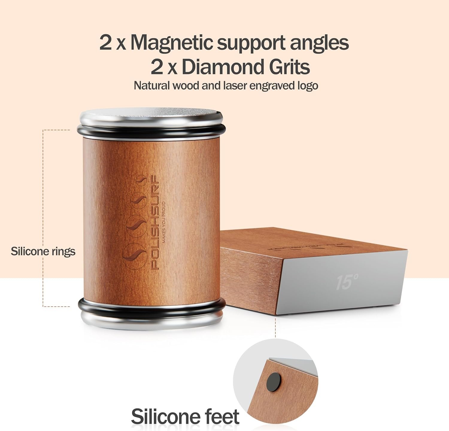 Magnetic Angle Base for Kitchen Knives: Maintaining a constant sharpening angle is a key factor in sharpening your knives and this is the role of the strong magnetic knife holder with 2 angle supports, 20 degrees suitable for many kitchen knives and 15 degrees suitable for higher blade sharpness or ultra-fine cutting.