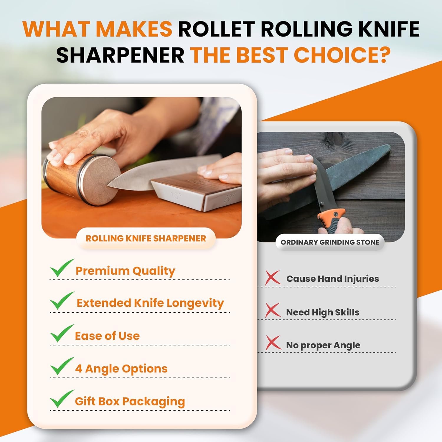 Extended Knife Longevity: For culinary professionals valuing precision, investing in quality knives is imperative. Extend the lifespan of your knives significantly with the Rollet knife sharpener, ensuring they maintain optimal sharpness for prolonged use.