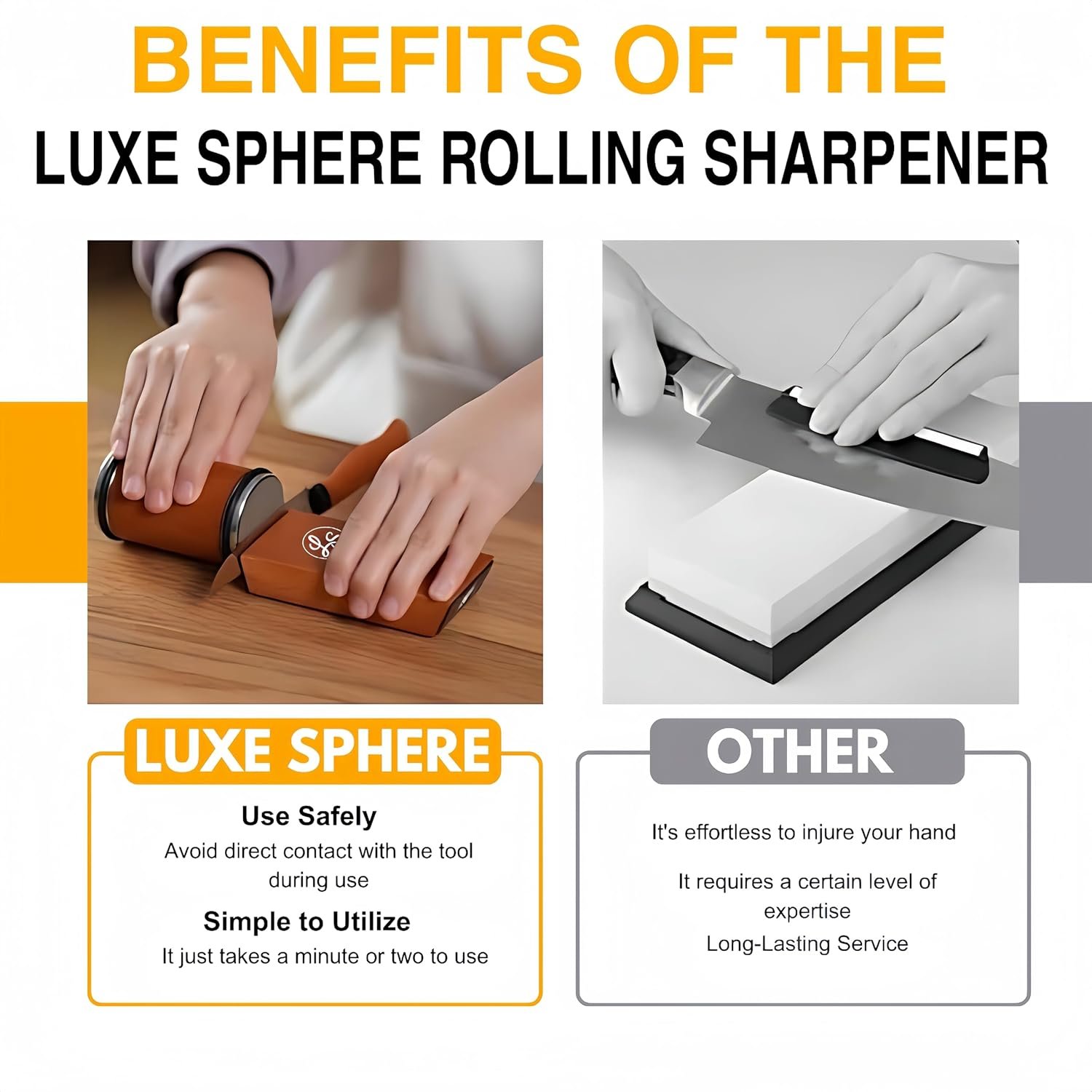 {Elegant Gift & Long-Lasting Quality} The LUXE SPHERE professional knife sharpener is built to last and comes in a beautiful gift box. It’s perfect Christmas gifts for chefs , knife lovers, and home cooks who want high-quality kitchen tools. This rolling sharpener not only works great but also makes a thoughtful and impressive gift for Thanksgiving.