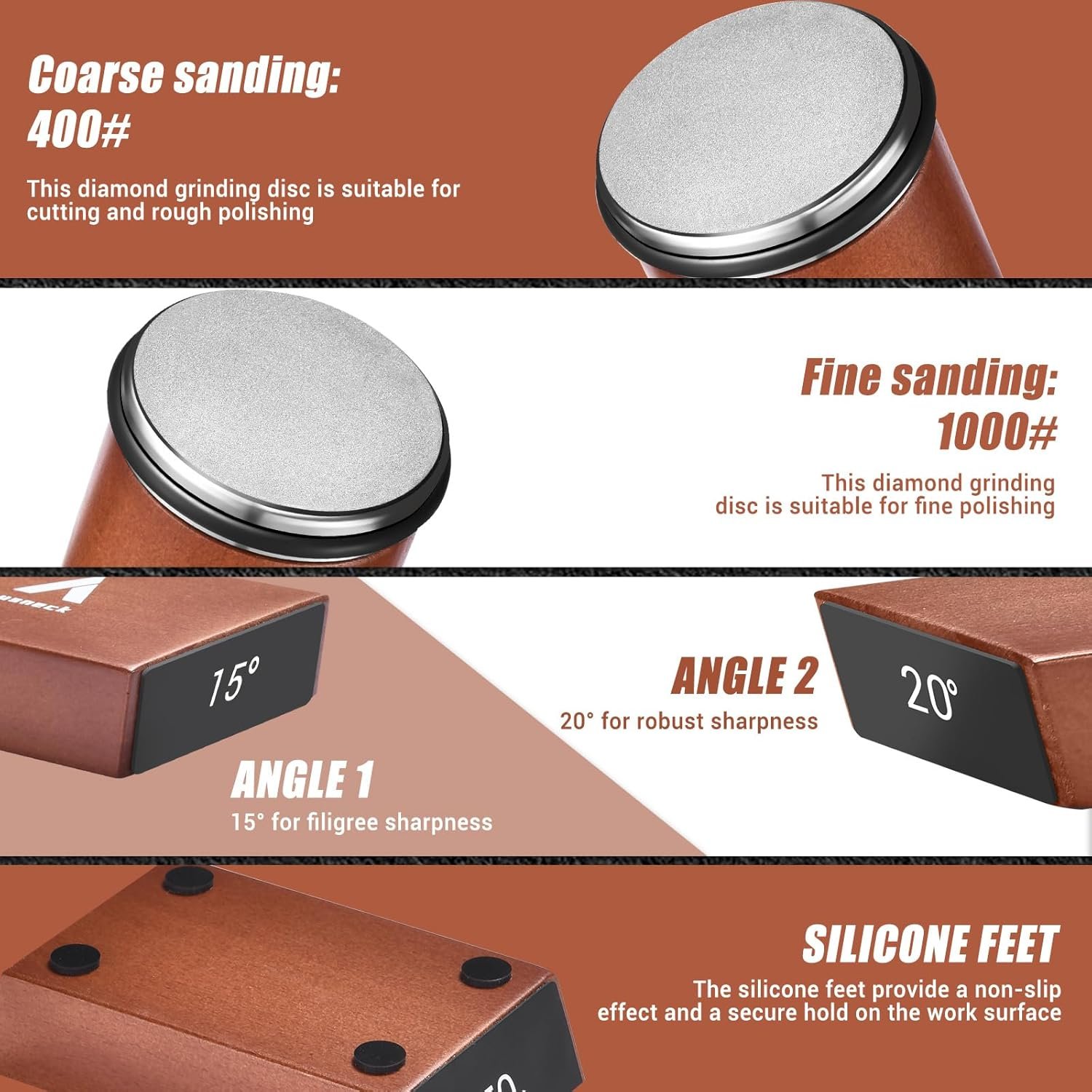 【15° and 20° Sharping Angles】: The Rolling Knife Sharpener base has two grinding angles, 20 degrees suitable for most household kitchen knives, and 15 degrees suitable for higher sharpness requirements