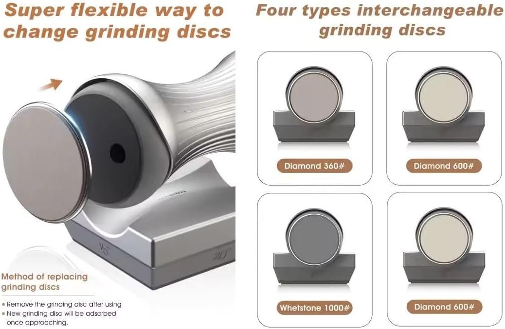 ⚒️ 4 GRINDING STONES INCLUDED: This sharpener comes equipped with a complete sharpening system. Included are one Diamond stone (360 #) for coarse sharpening, two Diamond stones (600 #) for refining the edge, and one Whetstone (1000 #) for achieving a polished, razor-sharp finish.
