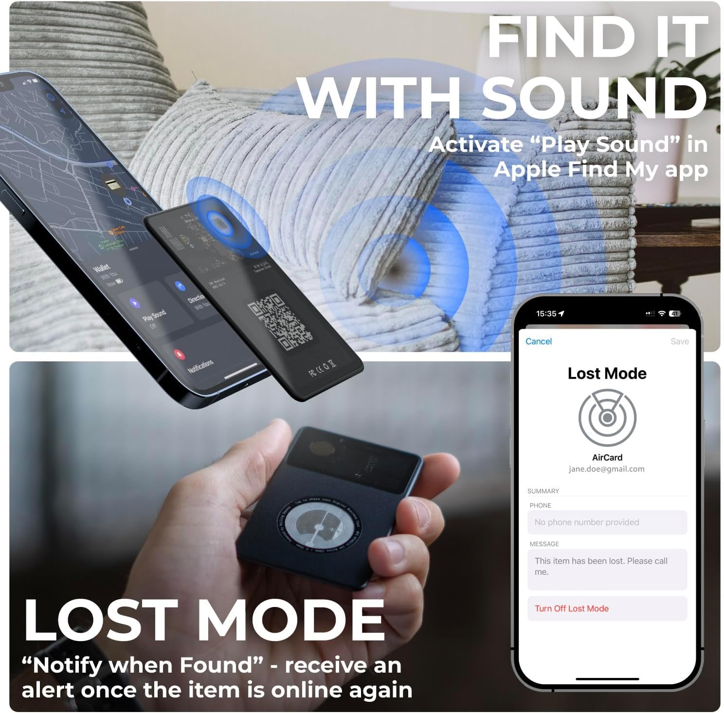 Find It With Sound: Using the Find My app or Siri, prompt your AirCard wallet tracker to emit a sound that is 20% louder than an AirTag and will help you quickly locate your wallet, whether it’s hiding nearby or buried deep in your bag