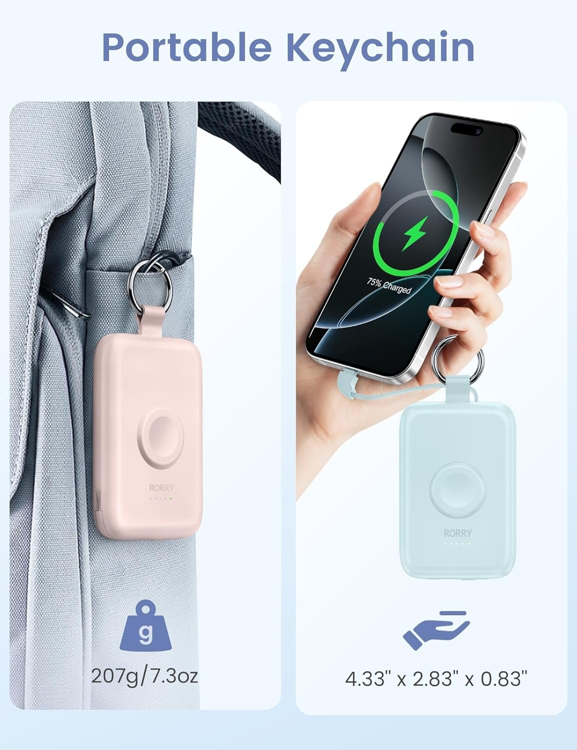 PD 20W Fast Charging Power Bank: RORRY portable charger power bank charge your iPhone 16 Pro to a whopping 56% in just 30 minutes and fully power it up in 1.5 hours! fully charged for Apple Watch series 9 in 1.42 hours. Enjoy a high-speed charging experience on the go!